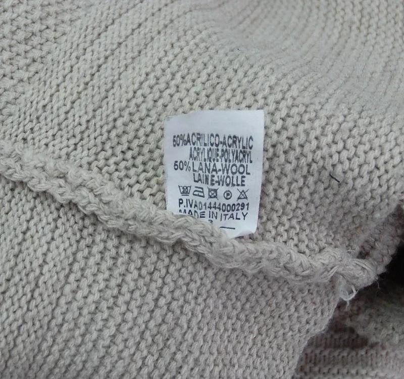 Sveter je béžový textúrovaný sveter so širokým lodičkovým výstrihom a 3/4 rukávmi. Má výrazný vzor úpletu a rebrovaný pás v spodnej časti a na manžetách rukávov.