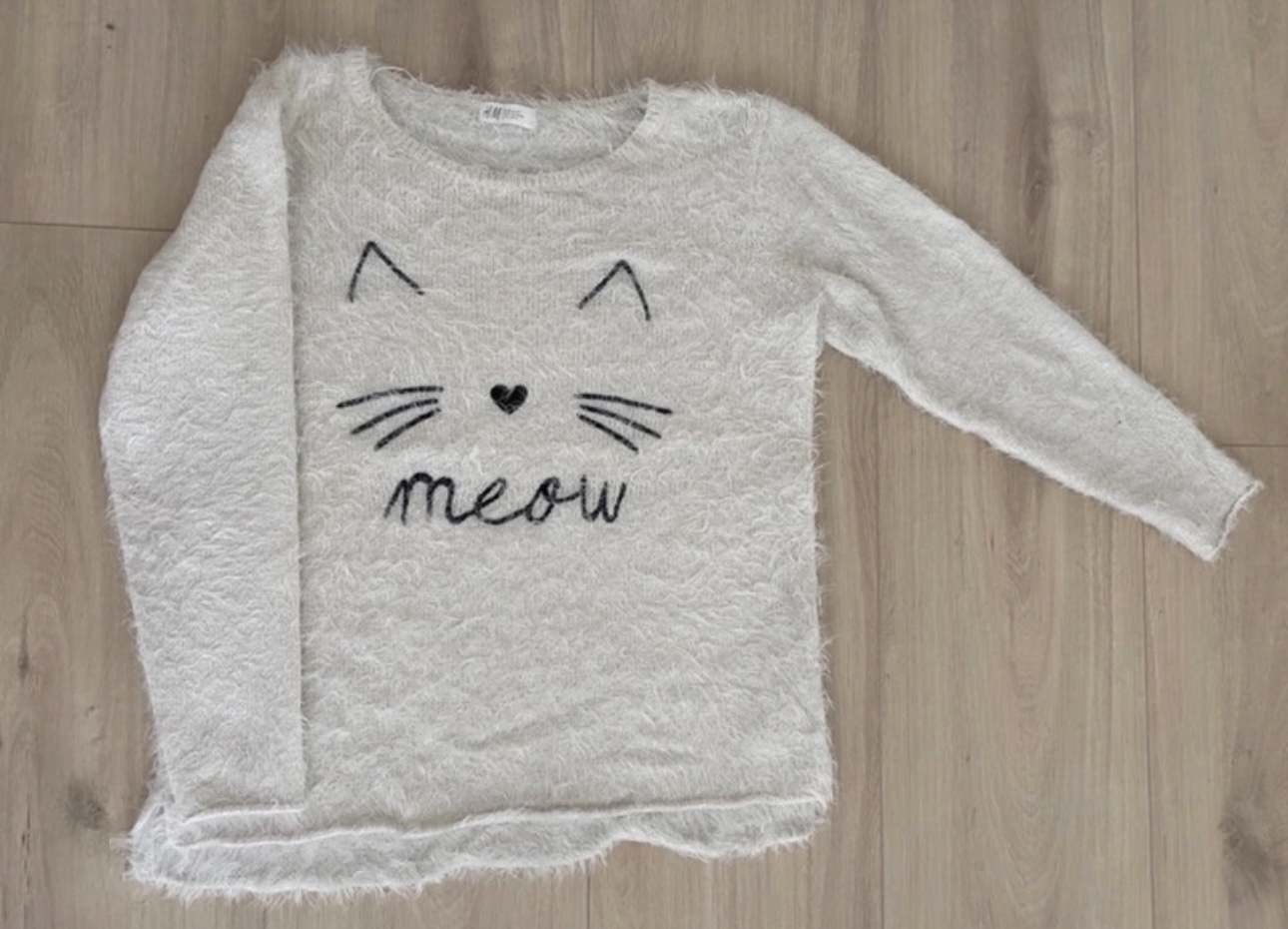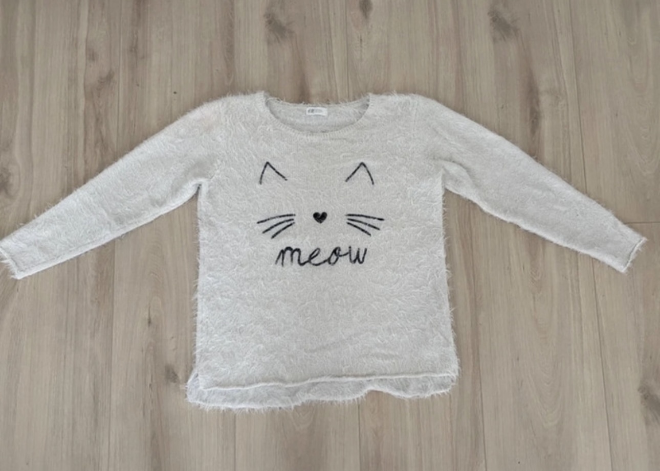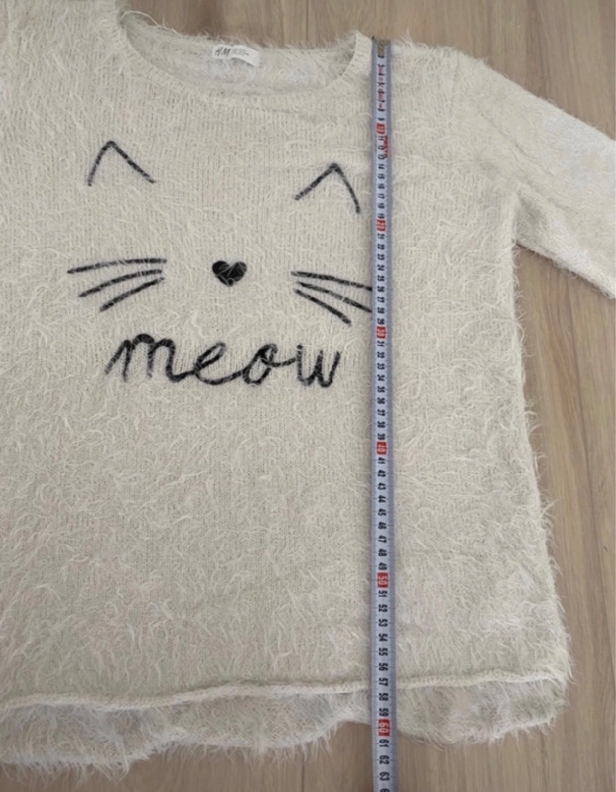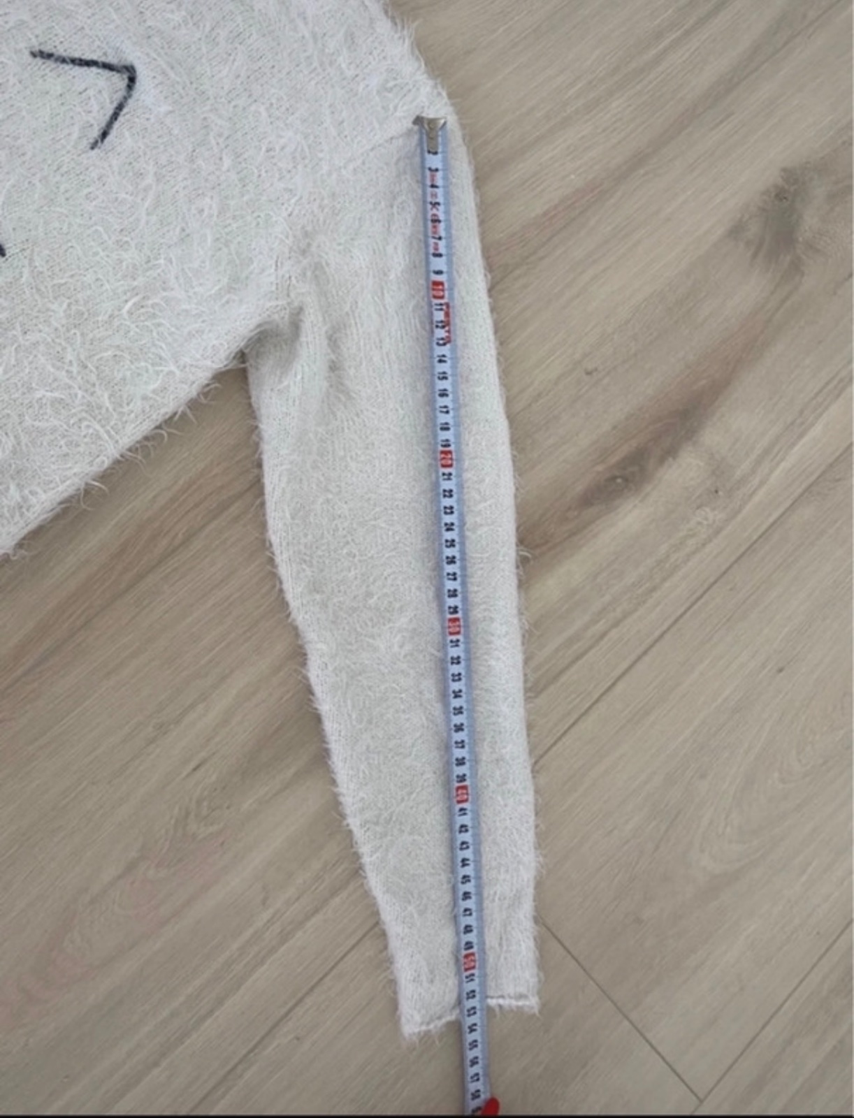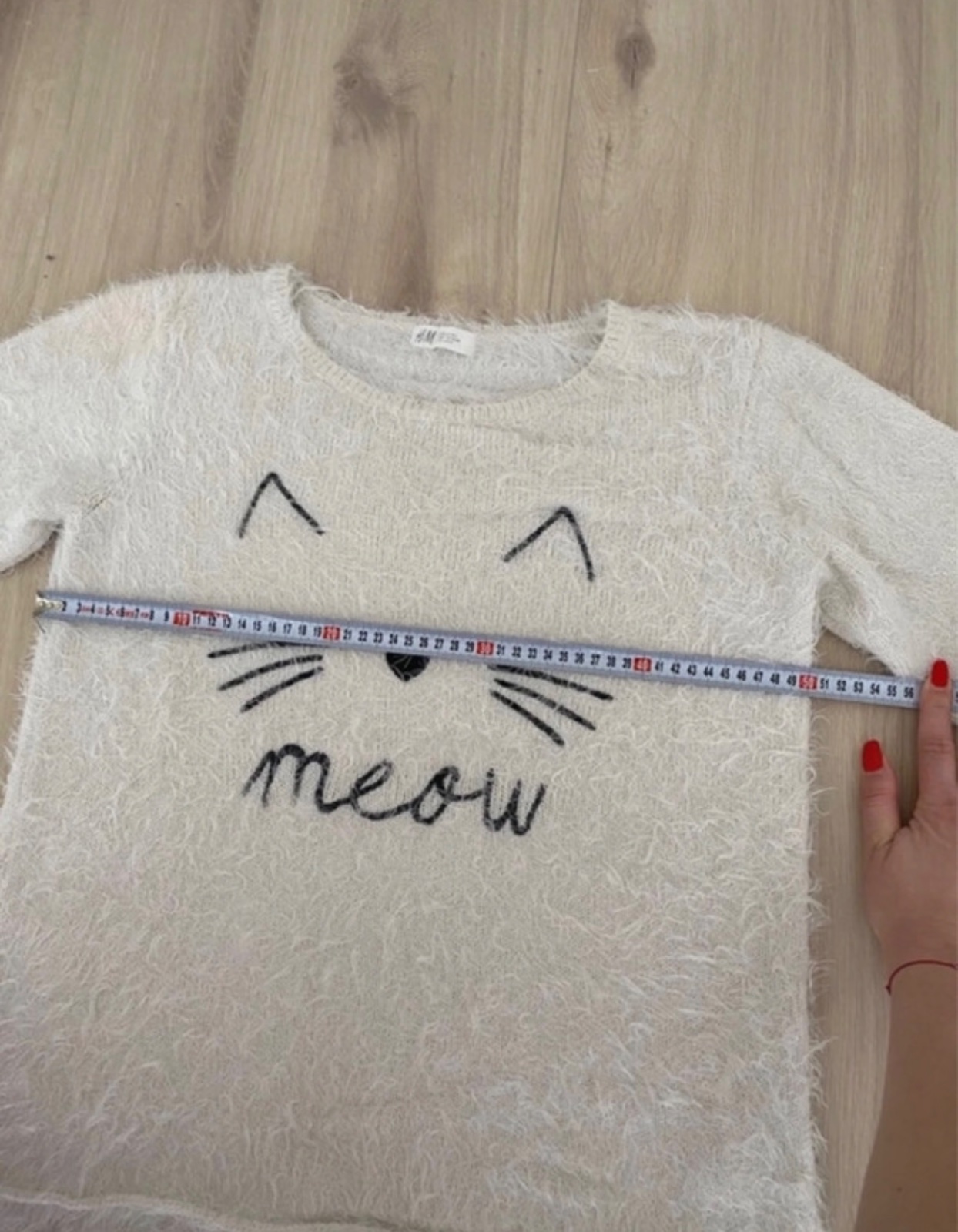 Krasny huňaty sveter, nie je to uplne biela farba, skor taka kremova, velkostne píšu 14+, ale mne sedi ako M-ko. Ja som ho nosila v zime, pre istotu som pridala aj rozmery.