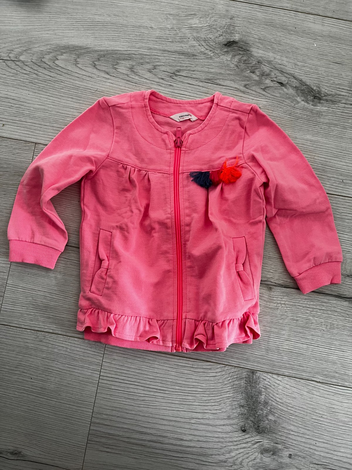Predám ružovo cukríkovú mikinu v spodnej časti s volánom značky Coccodrillo, veľkosť: 86 (12 - 18 mesiacov)