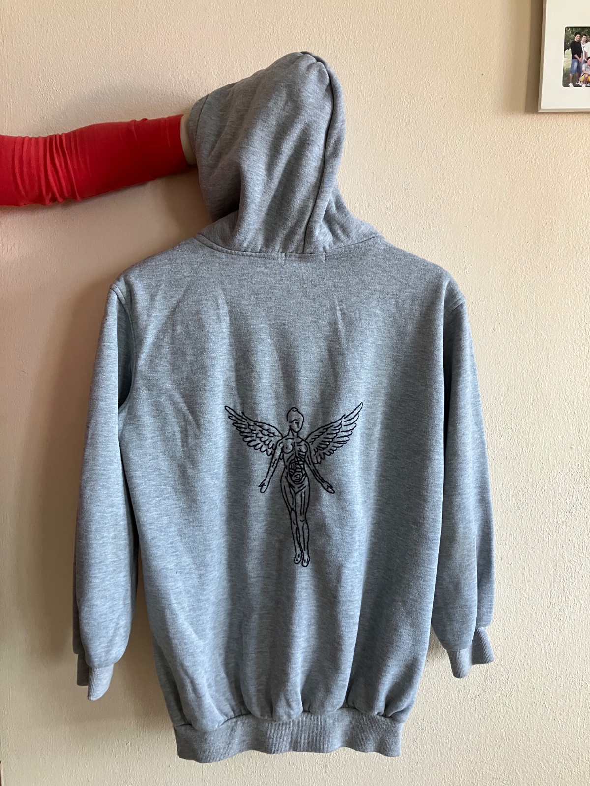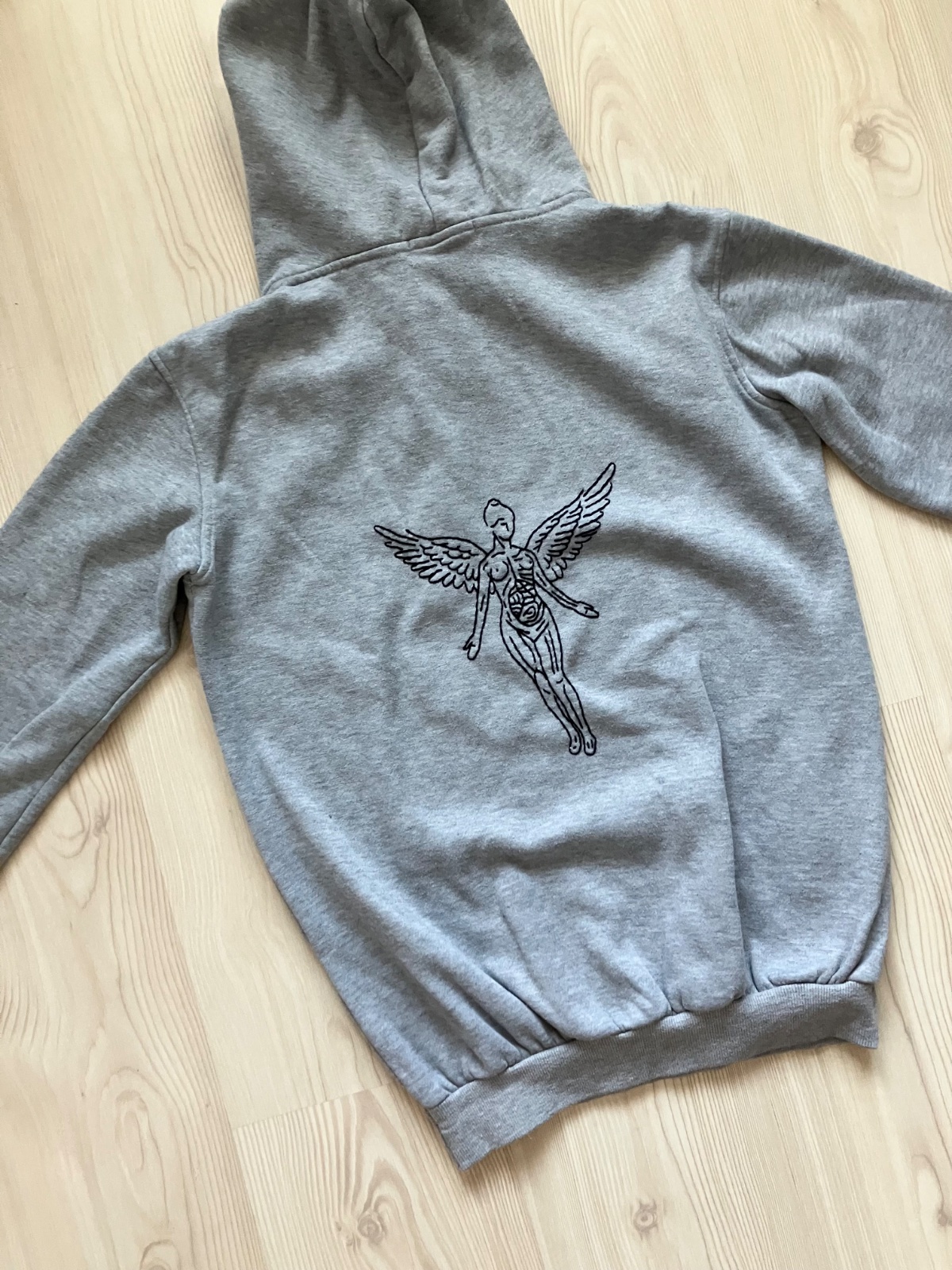 Ak si fanúšik grunge, alternatívnej scény a legendárnej Nirvany, táto mikina je presne pre teba! Jedinečný upcyklovaný kúsok, ktorý ťa dostane nielen svojím pohodlným strihom, ale aj ikonickým ručne vyšívaným logom albumu In Utero na chrbte.