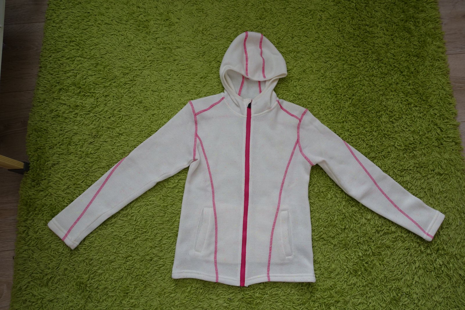 Predám teplú mikinu vo veľkosti 146/152 vo vnútri mierne zateplenú. Mali sme ju 1x, ale je v top stave. Zips je plne funkčný, v predu má mikinka 2 vrecká. Dĺžka je 58 cm a šírka 43 cm (meraná popod pazuškami). Dĺžka rukáva od krku 63 cm a od ramena 53 cm. Mám na predaj z tejto istej značky a veľkosti aj iné mikinky. Viď môj bazárik.