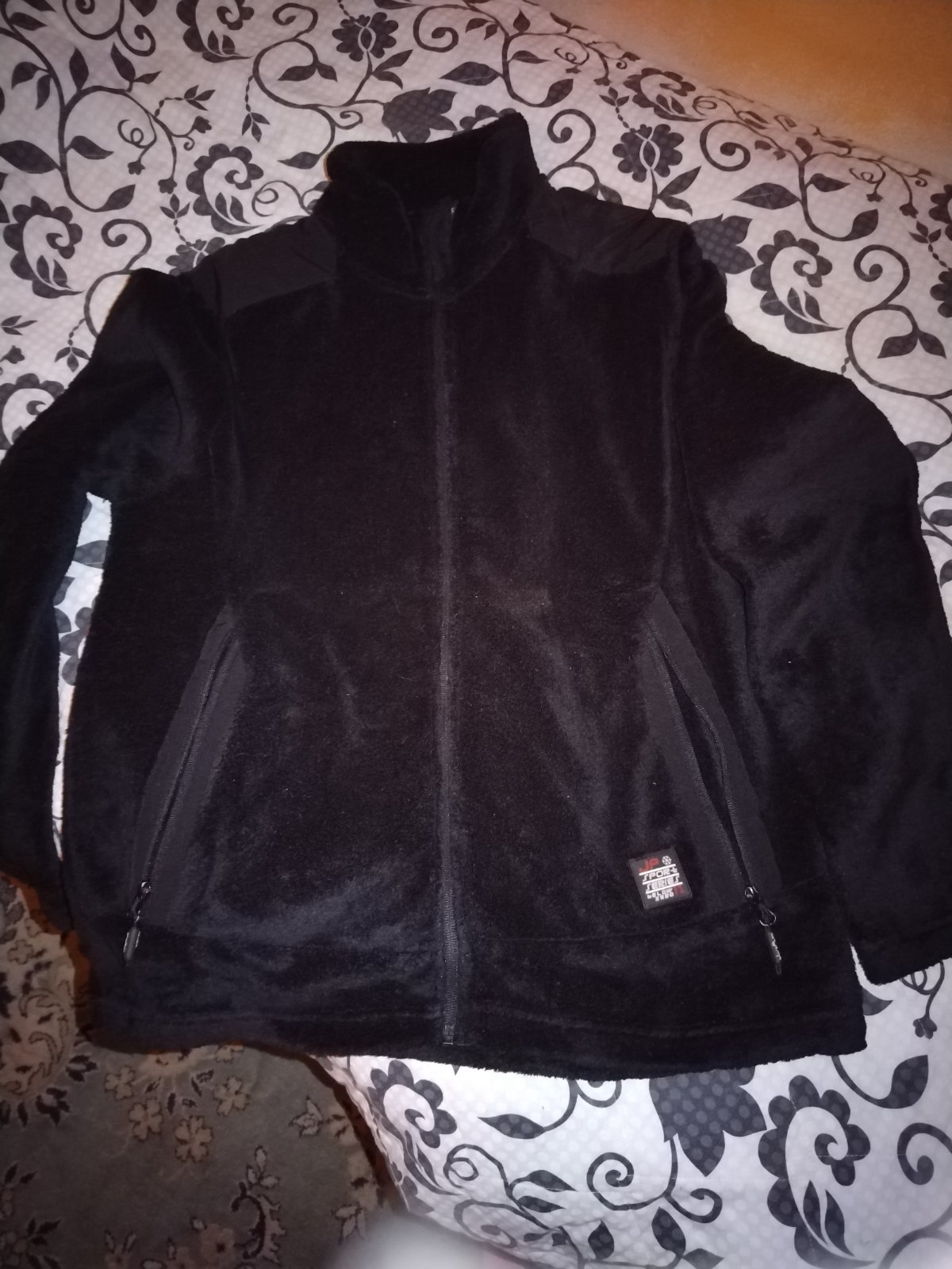 Čierna chlpatá mikina na zips, vrecka, dĺžka 69cm,sirka 57cm..