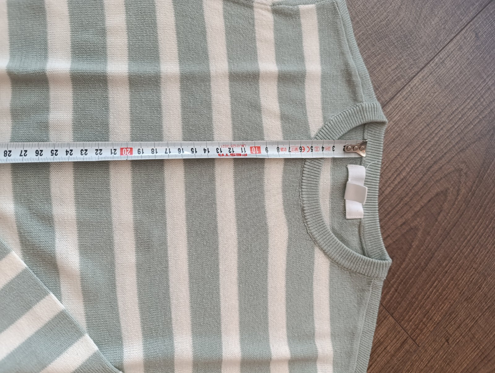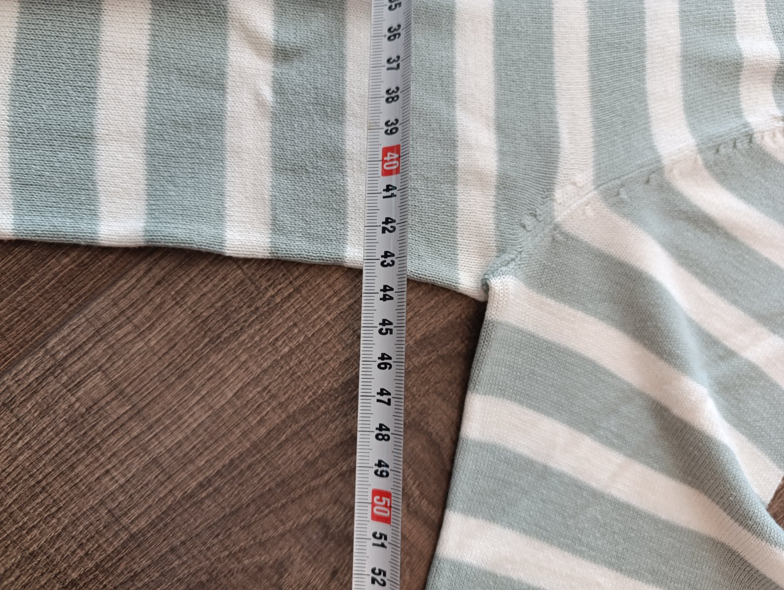 sveter je vo veľmi dobrom stave, príjemný materiál - 95% bavlna, 5% elastan, dĺžka 57cm, trištvrťové rukávy