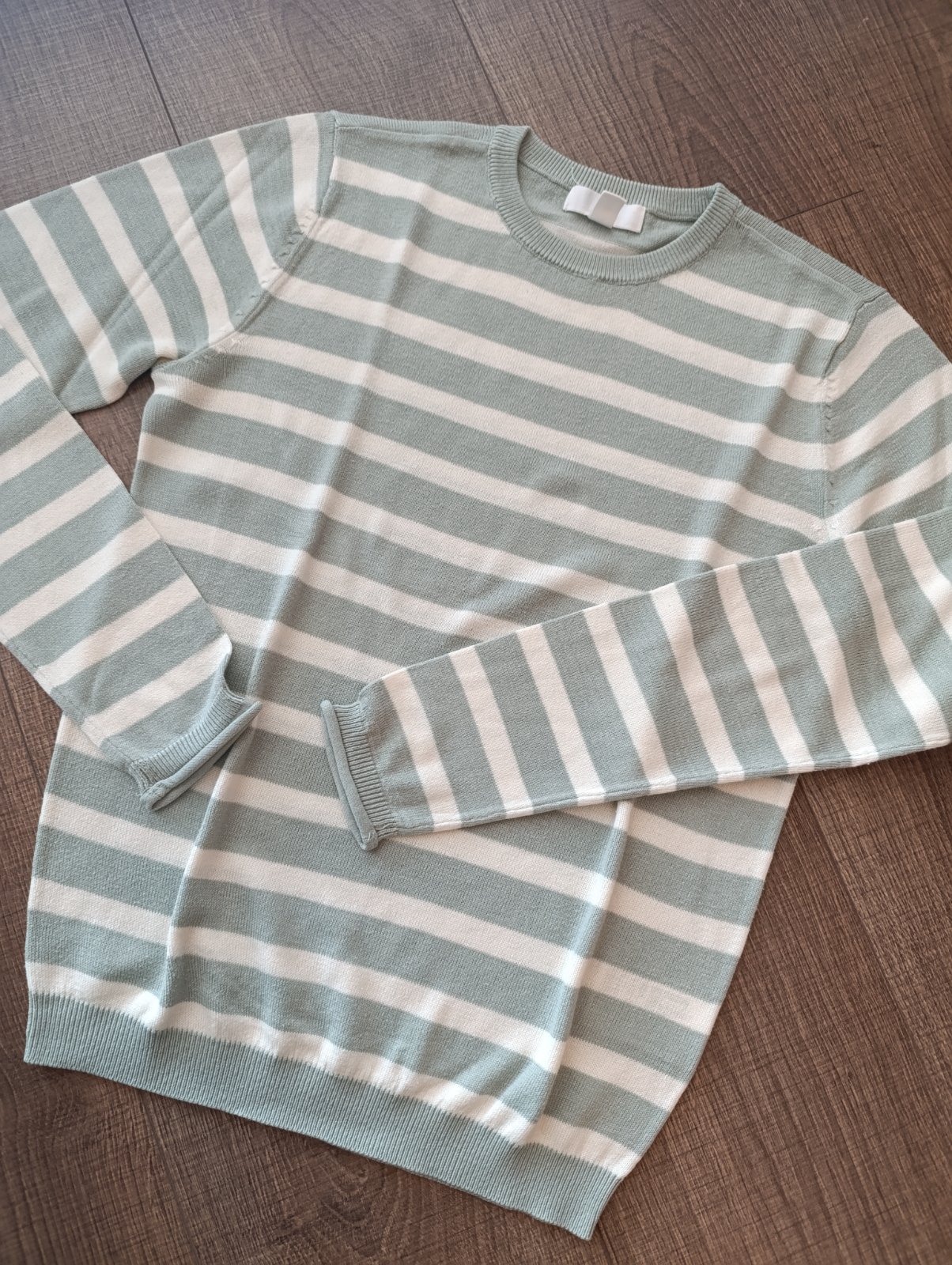 Krasny svetrik v svetlo-zelenej farbe so striebornym leskom Pekny noseny stav
