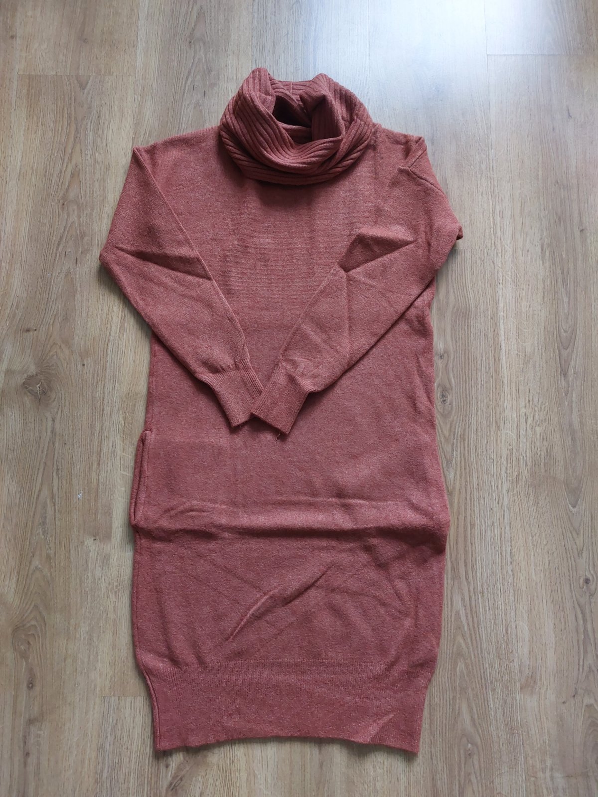 SkladomPonúkam na predaj dámsky dlhý sveter, ktorý sa dá nosiť aj ako pletené šaty. Vhodný k pančuchám aj k legínam. Materiál obsahuje angoru, takže je mäkký a zahreje. Elastický materiál. Vhodný na zimu/jeseň. Veľkosť S/M, L/XL. Farby: hnedá, čierna, oranžová, svetlohnedá, svetlošedá, šedofialová. V prípade záujmu pošlem rozmery.