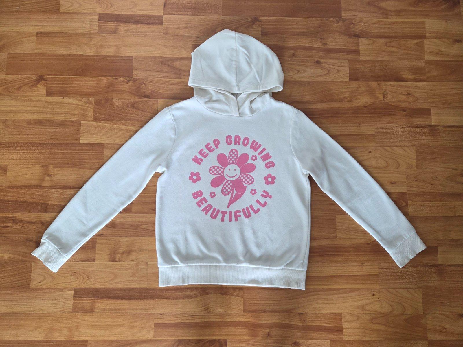 Bavlnené mikiny 2ks Kvietkovana zn.Terranova ...veľkosť 152/158... ale podla mňa skôr 146/152 mini žmolky Bledoružová zn.Lupilu ...veľkosť 146/152 Nosené ale bez poškodení či dier Rozmery na foto...