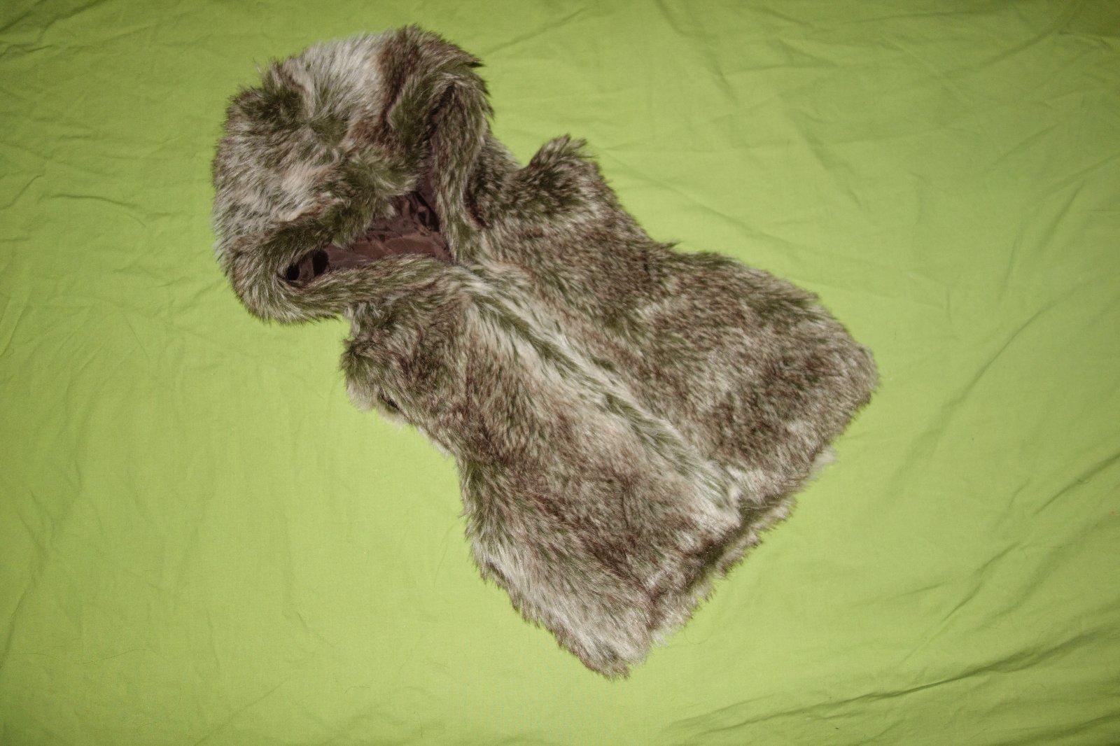 Krasna vesticka z umelej kozusinky vo velmi dobrom stave. Zapina sa na gombiky. Oproti fotke je trochu tmavsia.