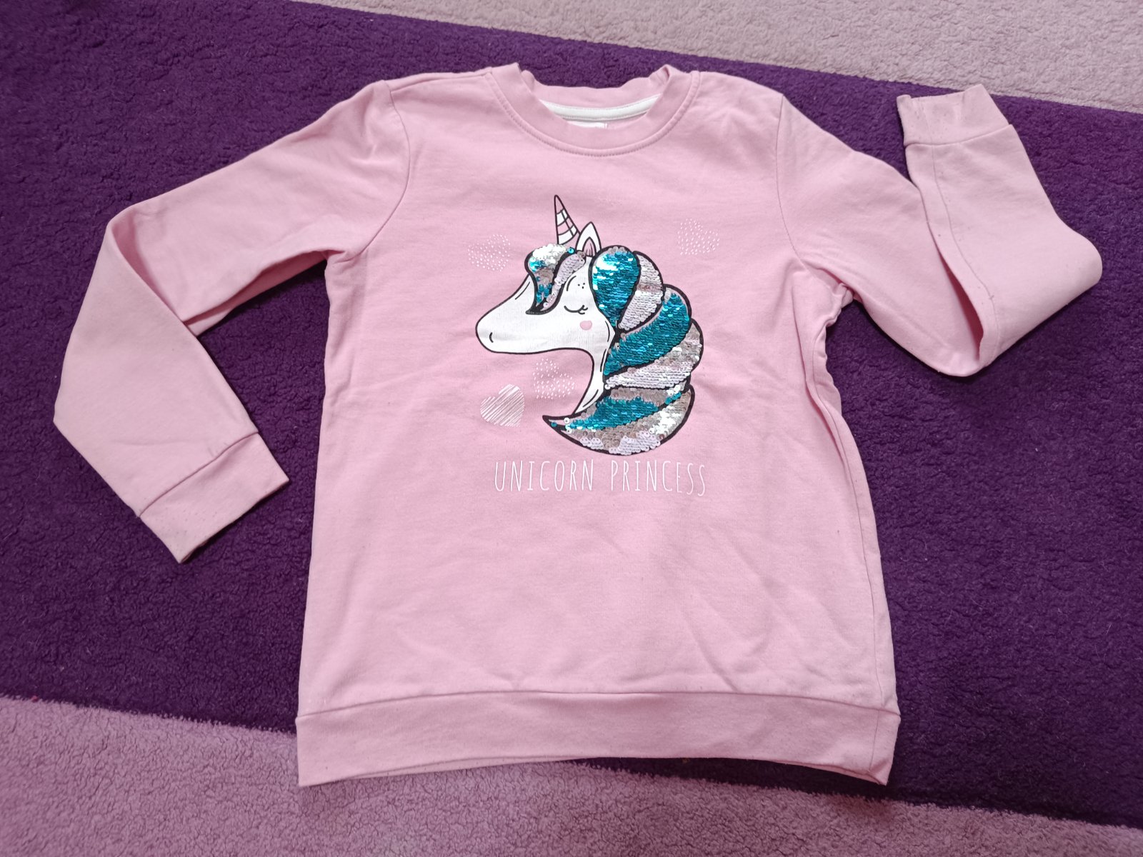 Dievčenská mikina. - v zachovalom nosenom stave - bez akéhokoľvek poškodenia - je kratšia - celková dĺžka 45 cm - šírka pod pazuchami 38 cm