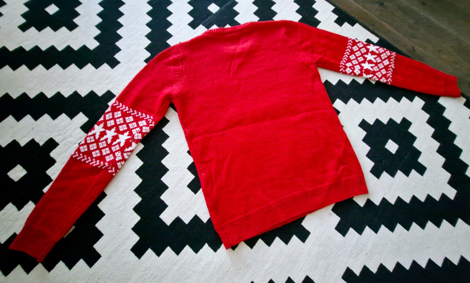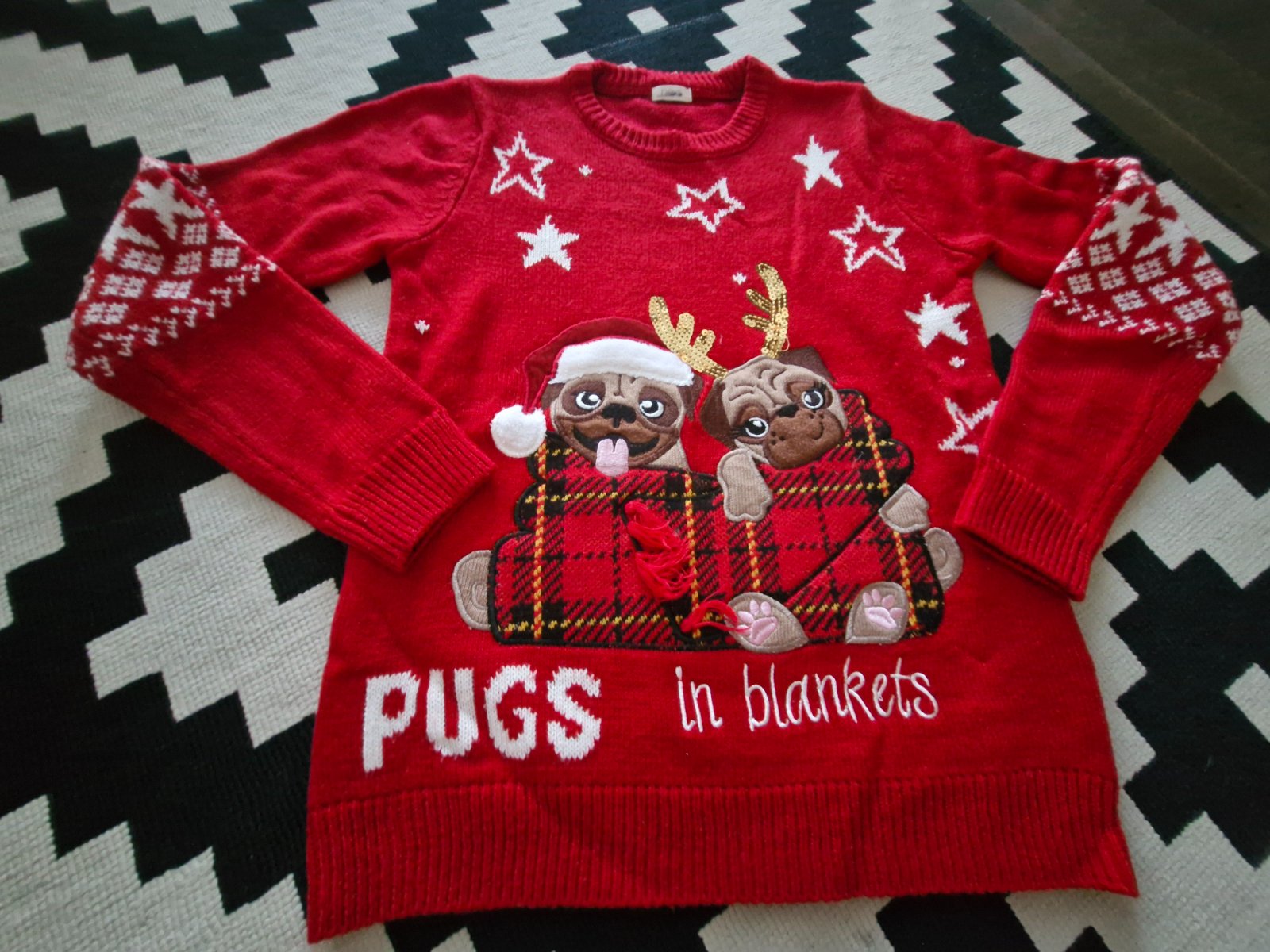 Krasny pulovrik s motivom vianocnych psikov v dekach premiovej znacky Next,cena LEN 9eur