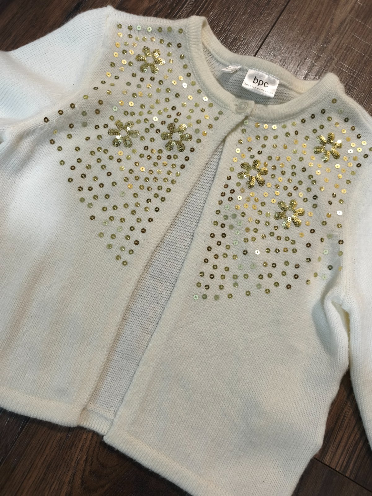 SKLADOM Luxusné pletené bolerko v béžovo-zlatej farbe s ozdobným gombíkom, zn. Monsoon, dovoz UK, dvojčíslie 11-12 rokov, kód 41503932. TOVAR JE U NÁS SKLADOM = EXPEDUJEME IHNEĎ žiadny Ali, iba o...