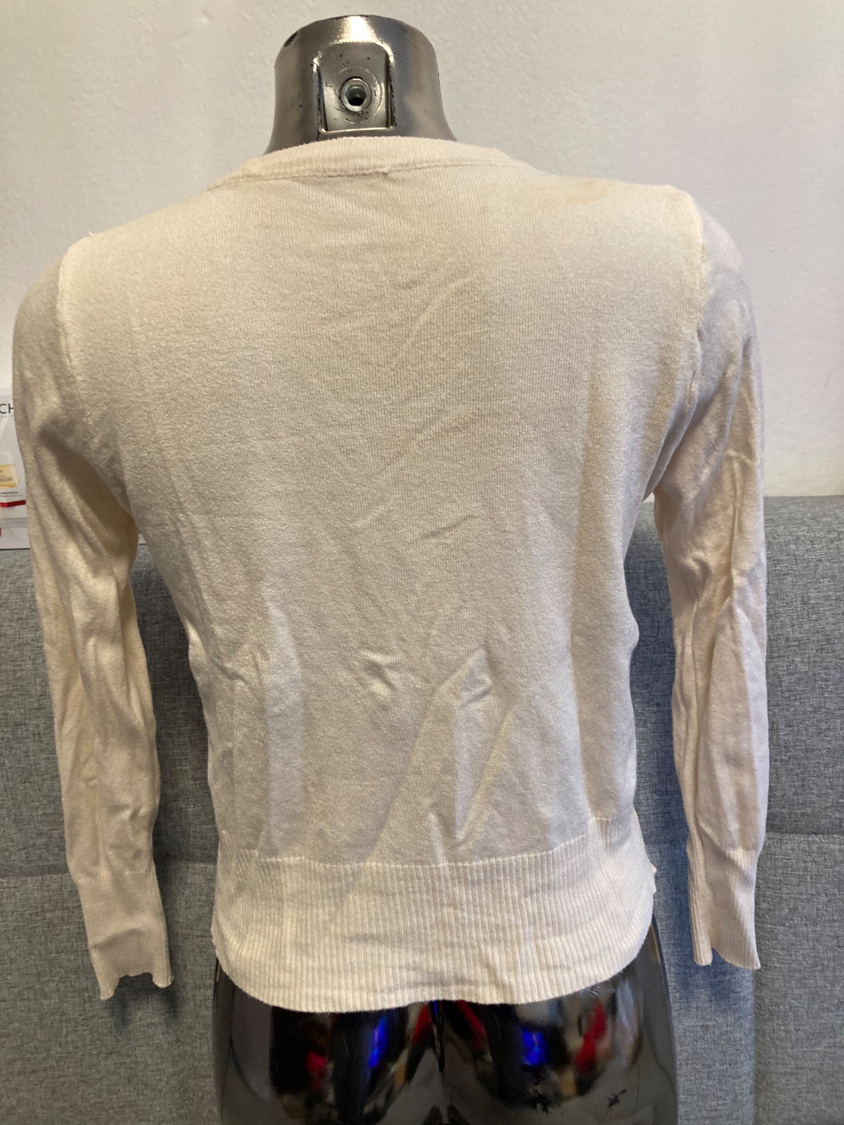Pekný svetrík so zlatými gombíčkami😉 na ramene mierne od makeupu viď foto.