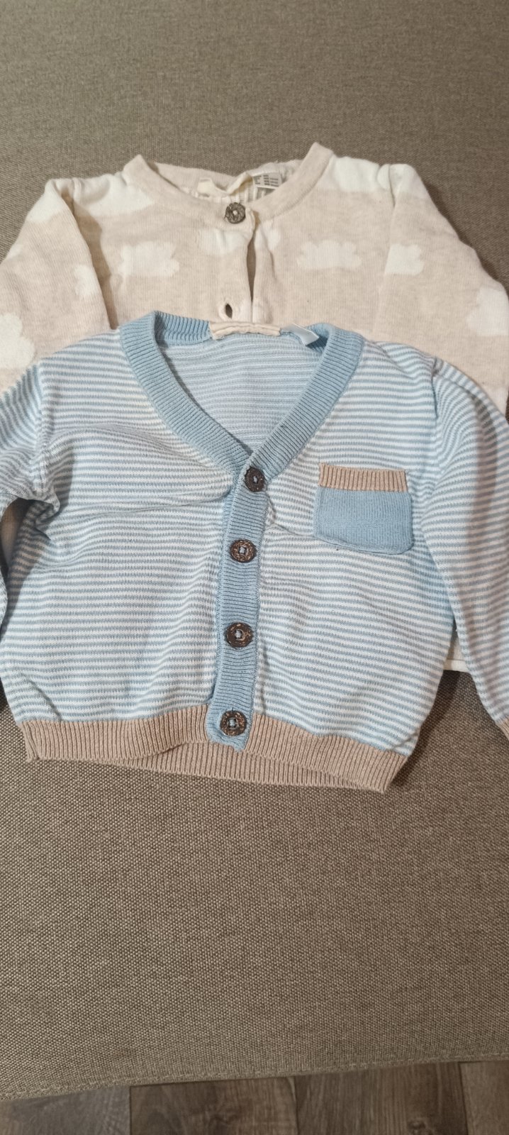 Modrý veľkosť 62/68. Béžový teplejší veľkosť 82/96. Cena za 2 kusy.
