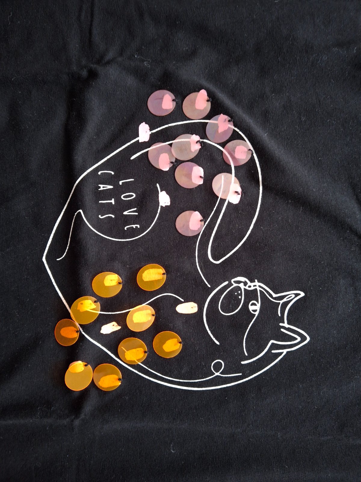 Predám málo nosenú mikinu čiernej farby s potlačou mačky, prišité farebné flitre oranžovej a ruzovej farby. COCCODRILLO, 146, 1 rokov.