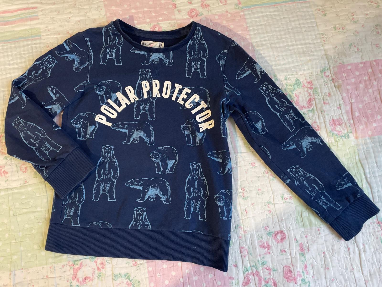 Mikinka so zvieracím vzorom o veľkosti 122/128, top stav.Malinko nosená,bez žmolkov, prijemny materiál, tenšia 🐻💙tmavomodrá .Cena+ poštovné
