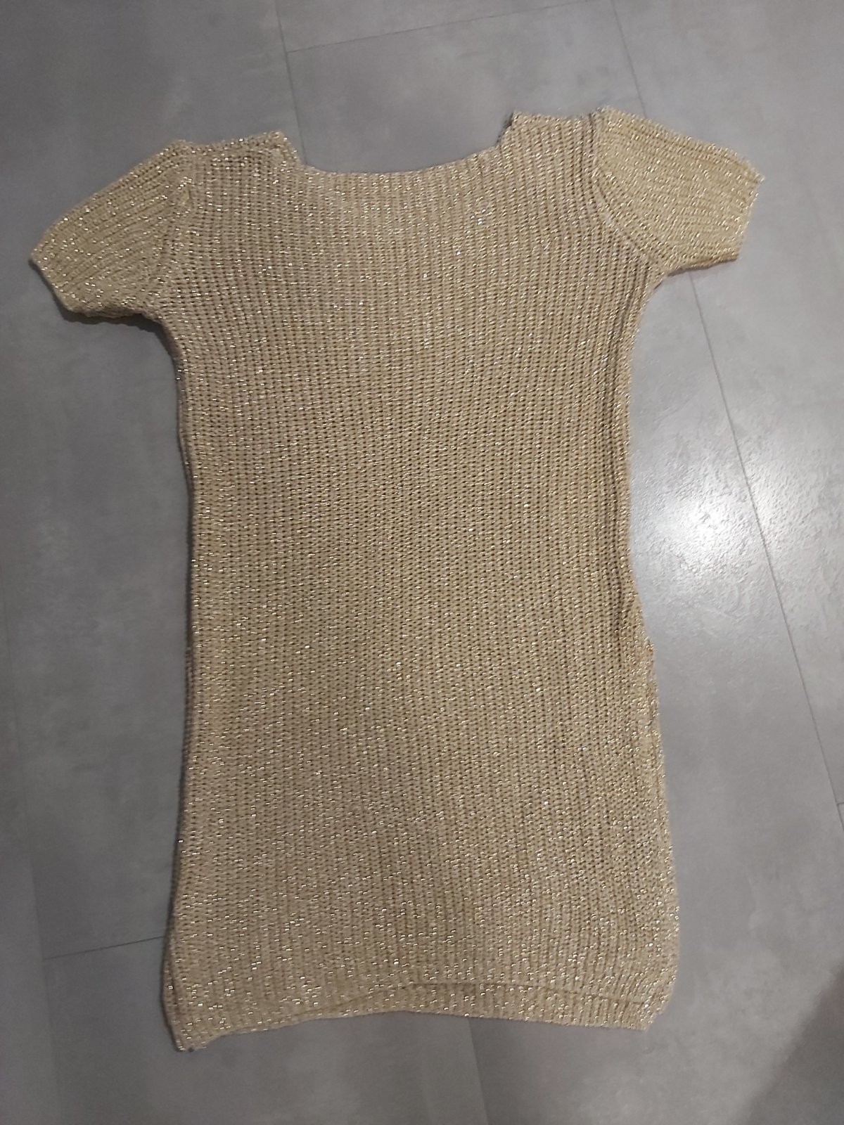 Zlaty metalický sveter alebo saty mini.