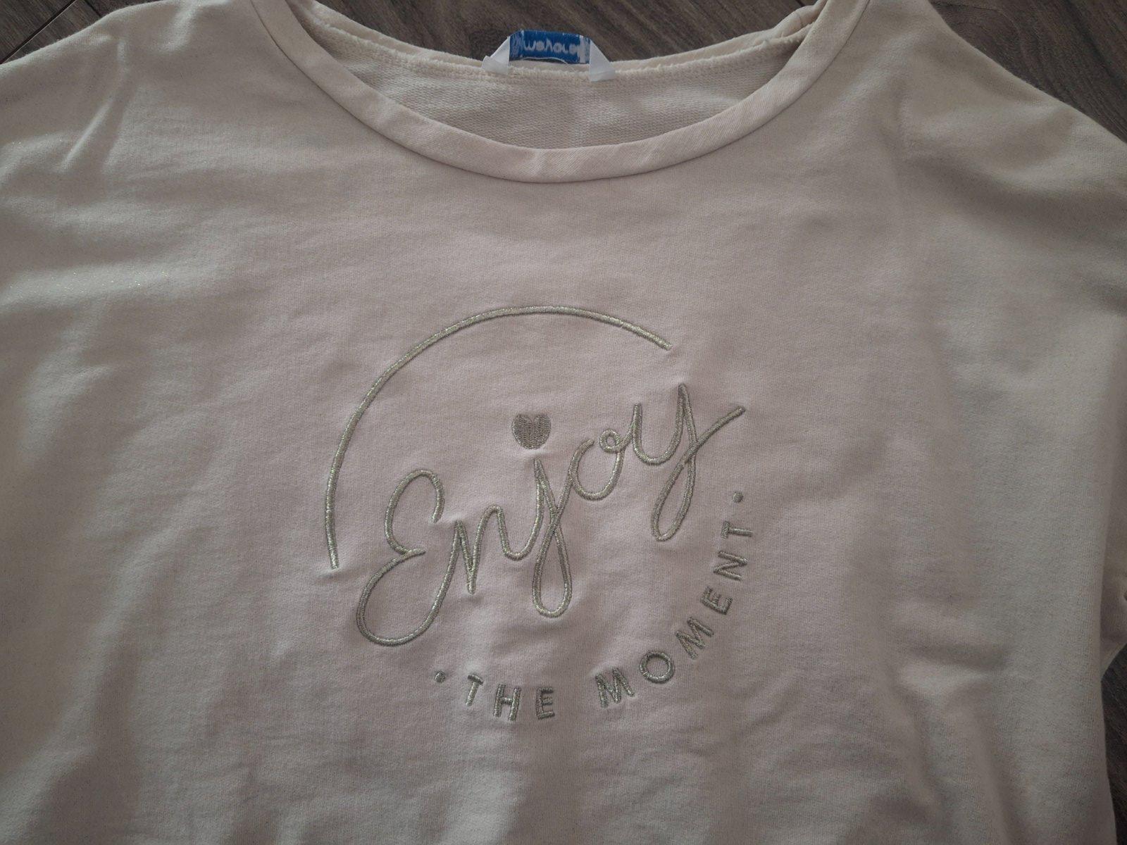 Krásna béžová mikina s nápisom Enjoy. Akoby popraskaná jemnulinkymi zlatými vláknami. Oblečená max 5x. V TOP stave