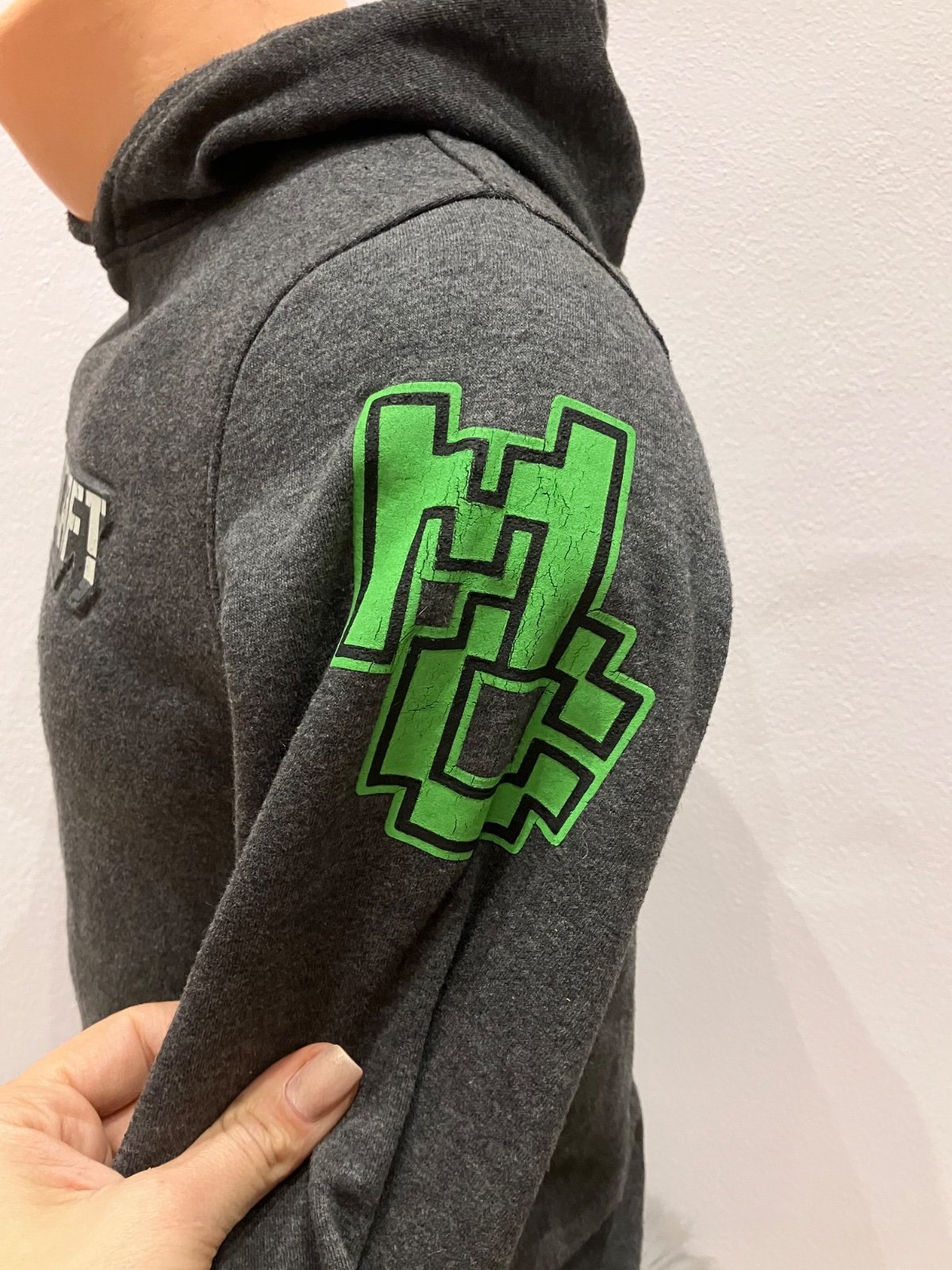 Chlapčenská mikina s kapucňou, vzor minecraft, vo vnútri jemný flís, jemne elastická, materiál 45%bavlna 55%polyester.
