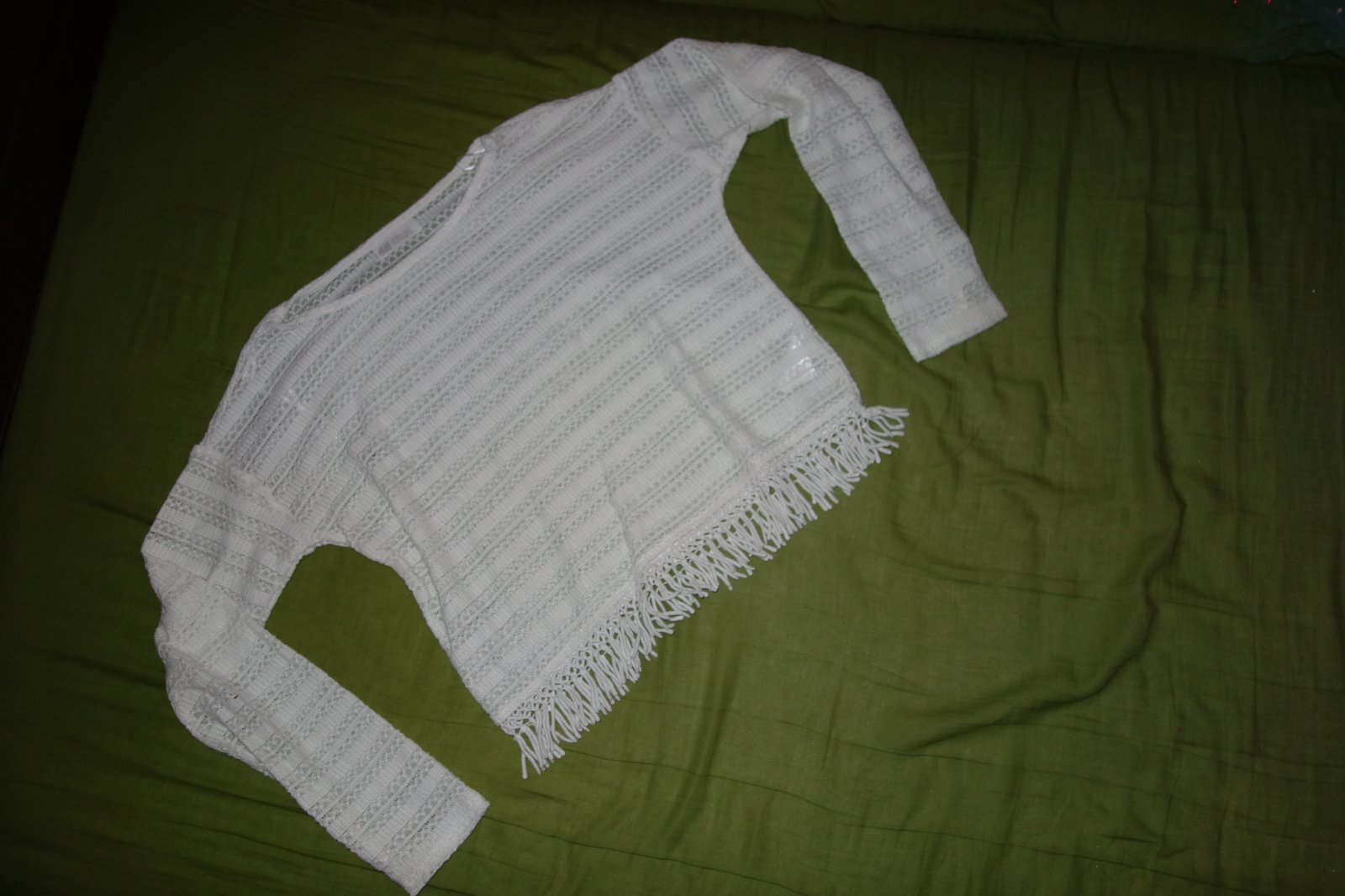 ROZMERY: dlzka rukavu od goliera: 64cm, rukav od pleca: 50cm, celkova dlzka od pleca: 44cm (merane bez strapcov na spodku), sirka pod pazuskami: 50cm