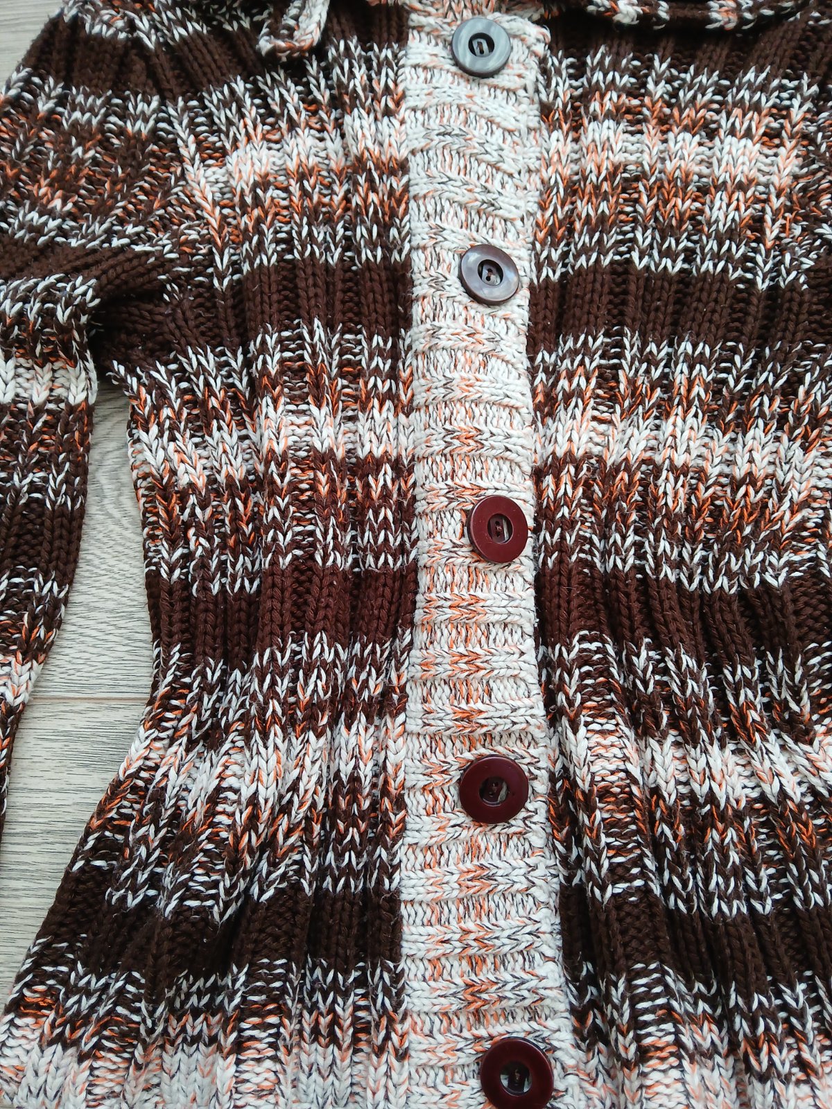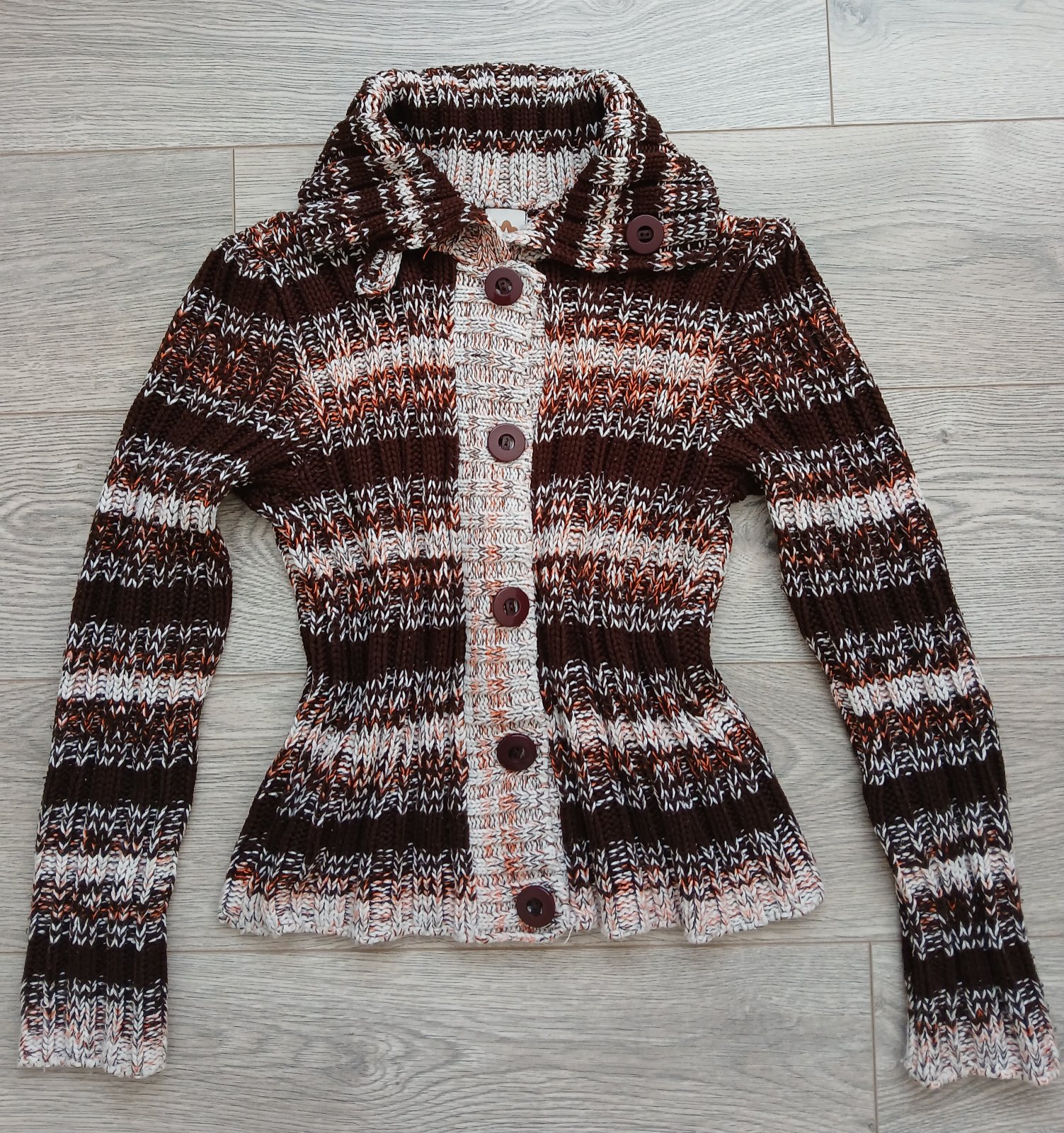 Predam hnedy sveter, velkost M, na gombiky, s vackami, akoby chlpkaty, chybu som nenasla, parkrat obleceny.