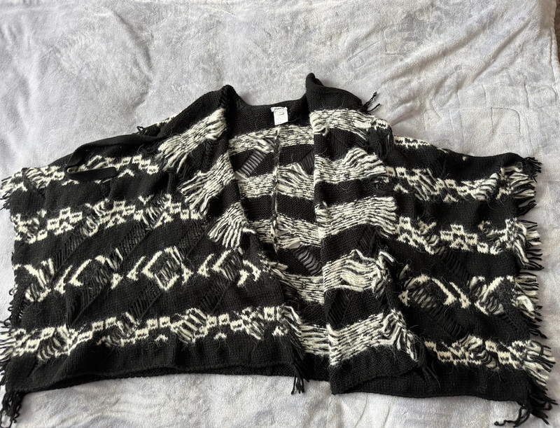 Pončo sa dá zaviazať. Málo nosené. Pôvodná cena 428€. (Moja veľkosť je S)
