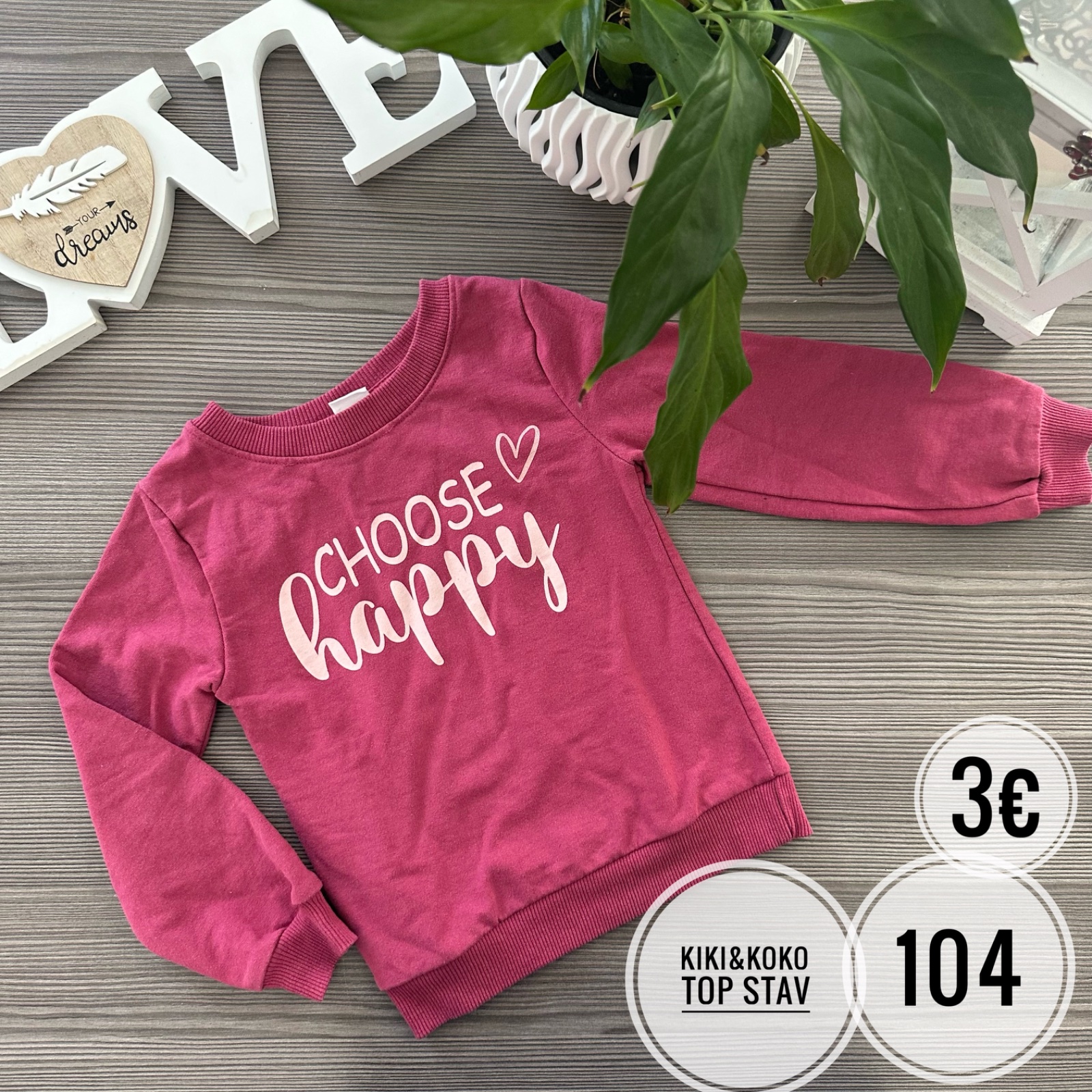 Prijemna mikina, veľkosť 98/104,celková dĺžka 45 cm, rukav od pazuchy 28 cm, šírka 35 cm.