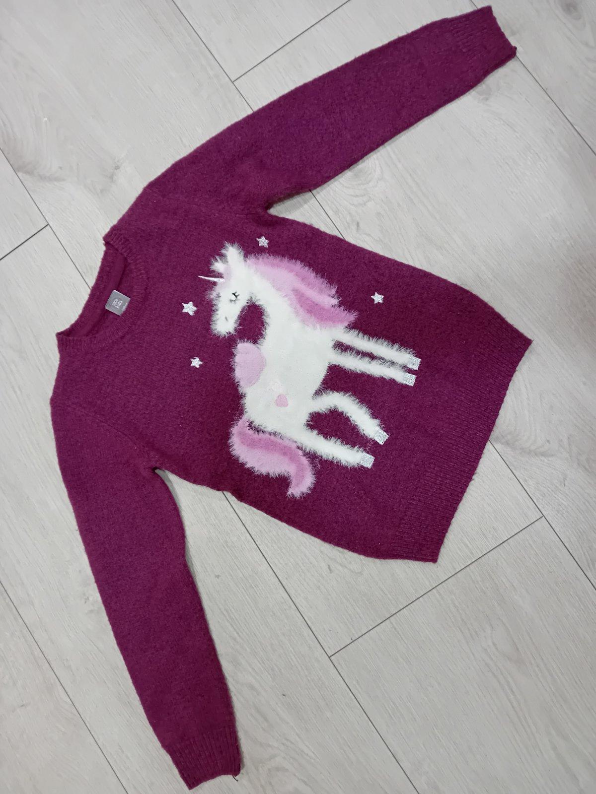 Krásny teplejší pulovrik s jednorožcom,veľmi zachovalý