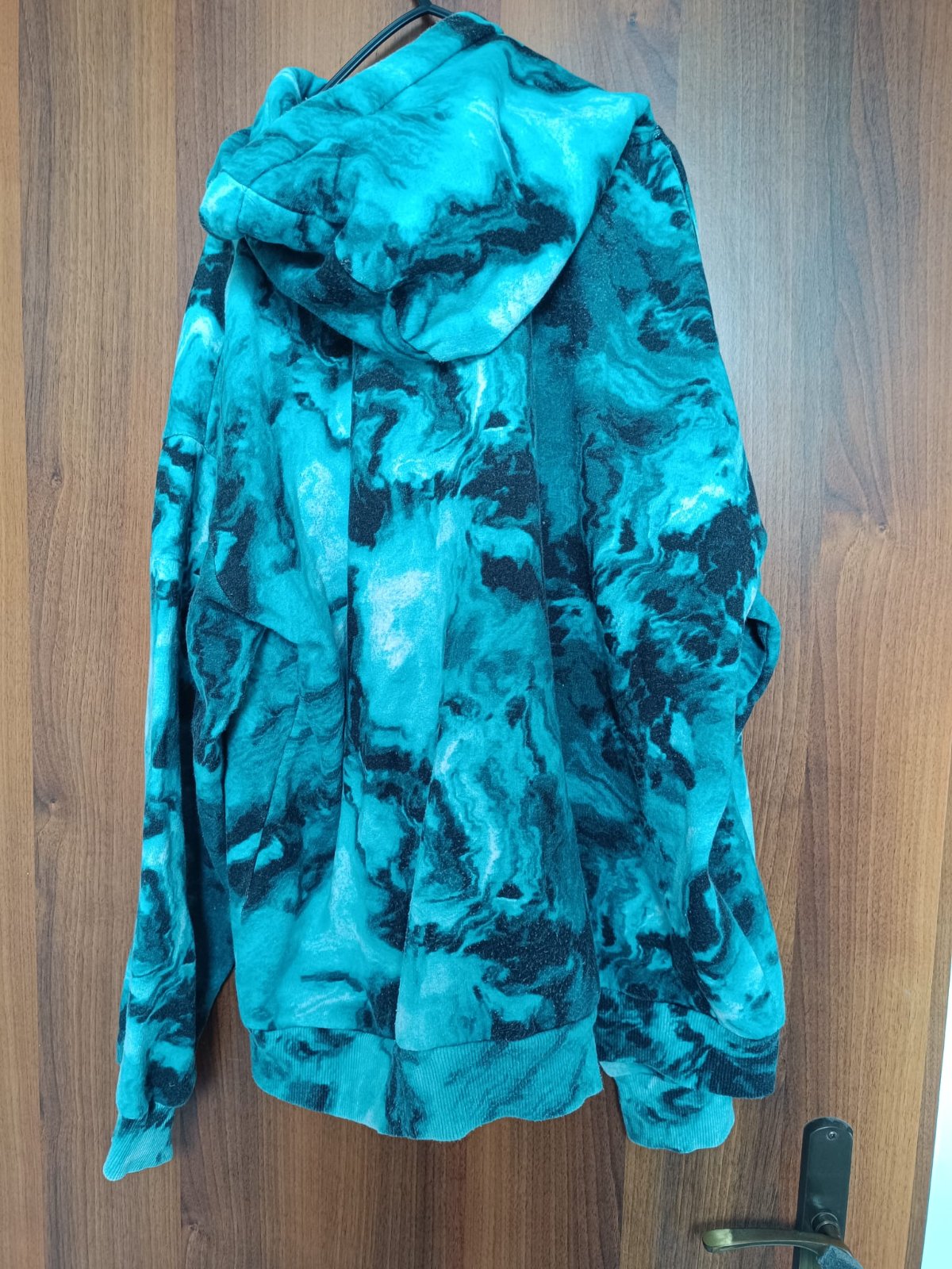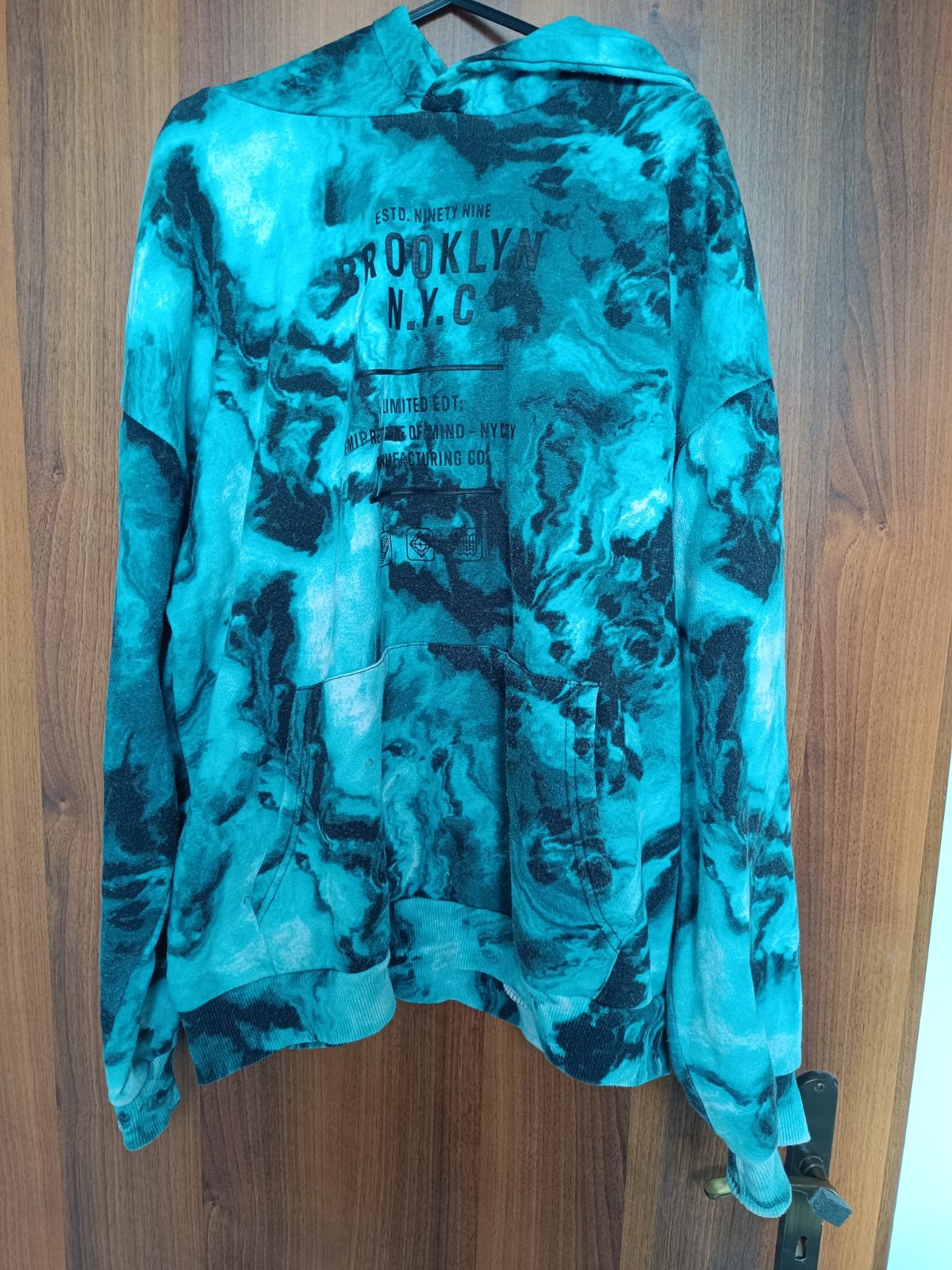 Rozmery pod pazuchou 2x52 cm, dĺžka rukáva od pliec 65 cm, celková dĺžka 66cm bez kapucňe .Farba je krajšia ako na fotke