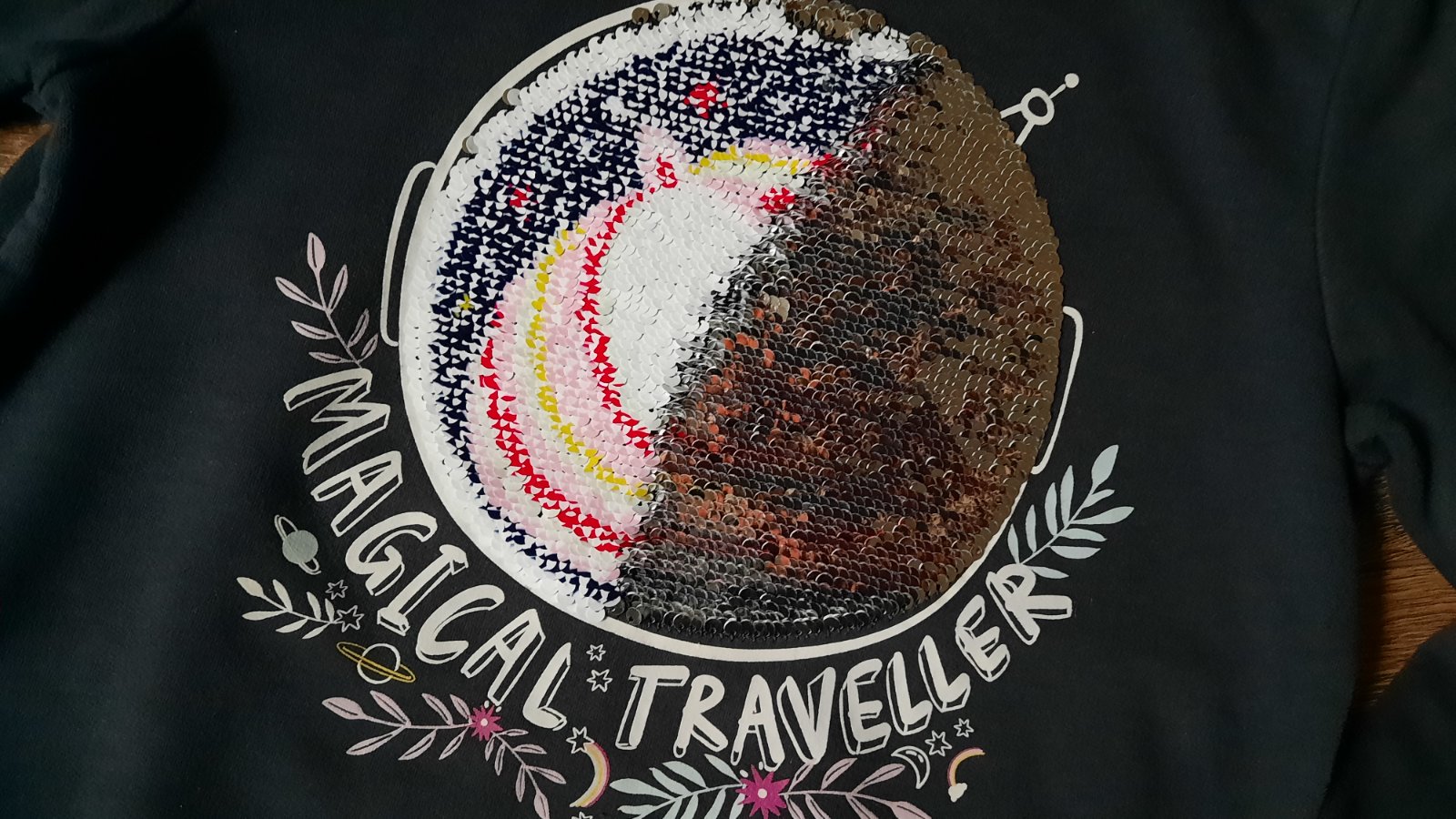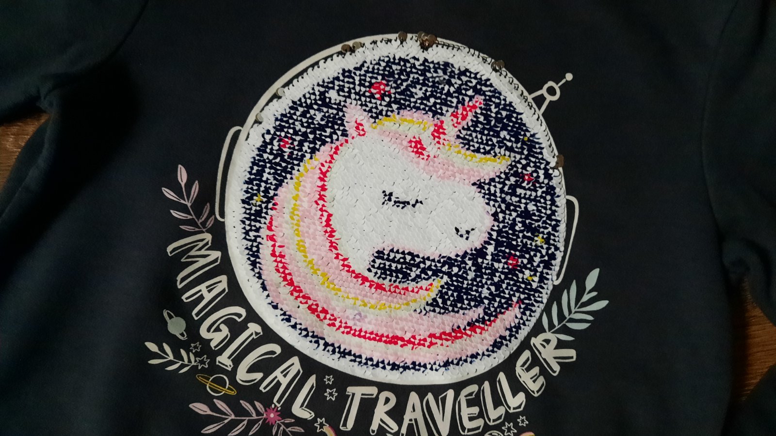 farba pekná tmavomodrá...flitrový obrázok Jednorožca je nepoškodený a dá sa meniť...