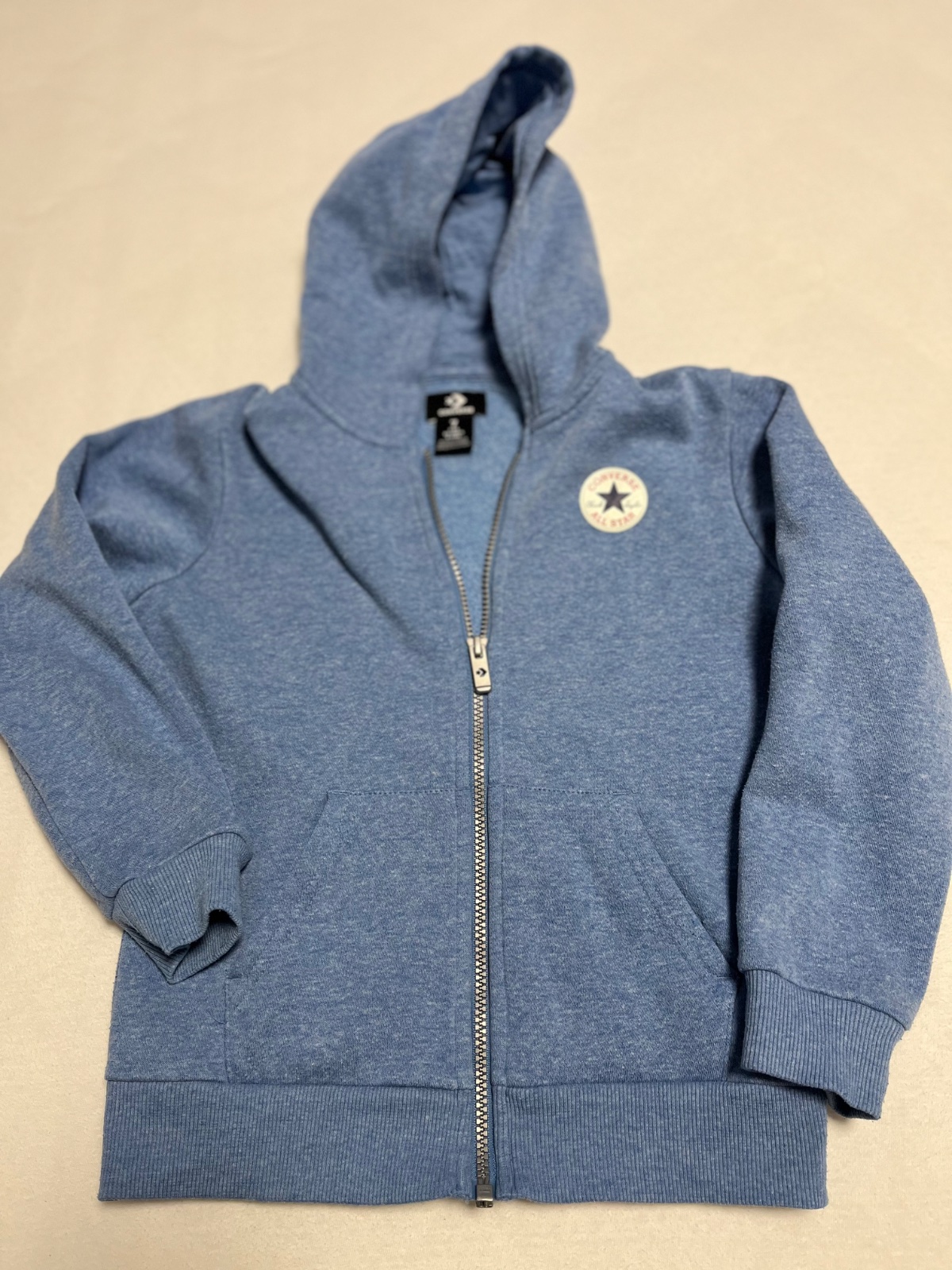 2x mikiny Converse. Jedna na zapínanie, veľkosť 110-116.Druha cez hlavu, veľkosť 116-122. Bez flakov. Cena za 1ks/8e, spolu 13e.