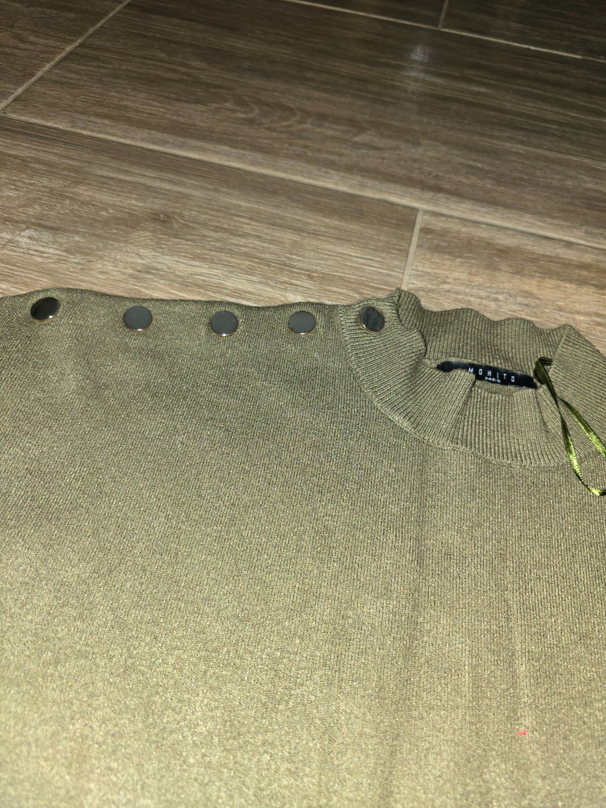 Pulovrik pár krát oblečený. Nie je hrubý. Farba ako na poslednej foto. Sedí na S-M.