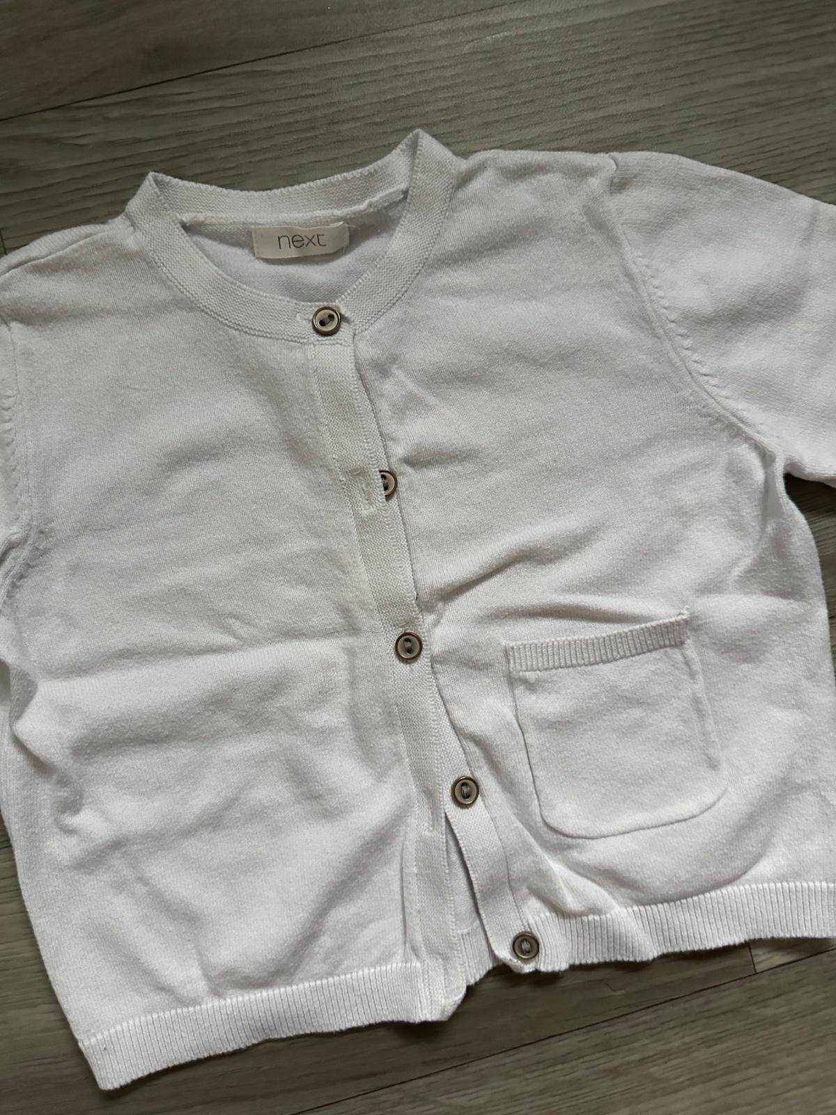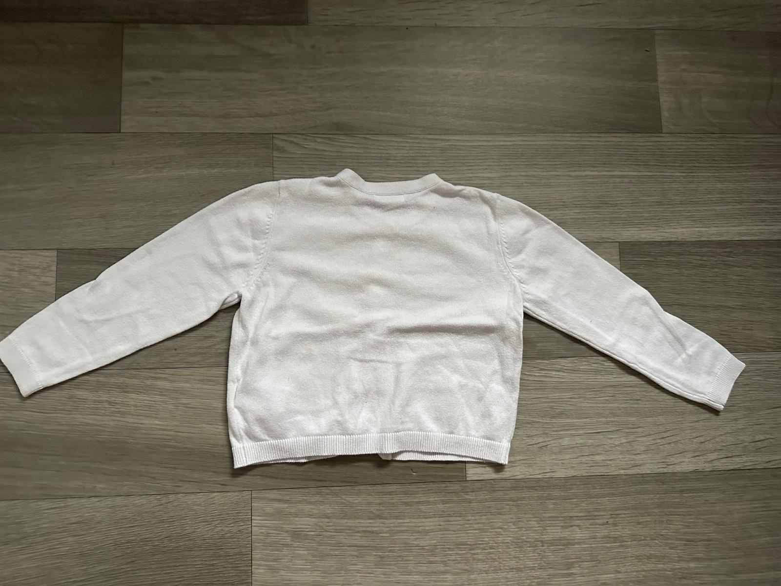 Ponúkam na predaj biely svetrík na gombíky, veľ. 98, ma prací chlpok.