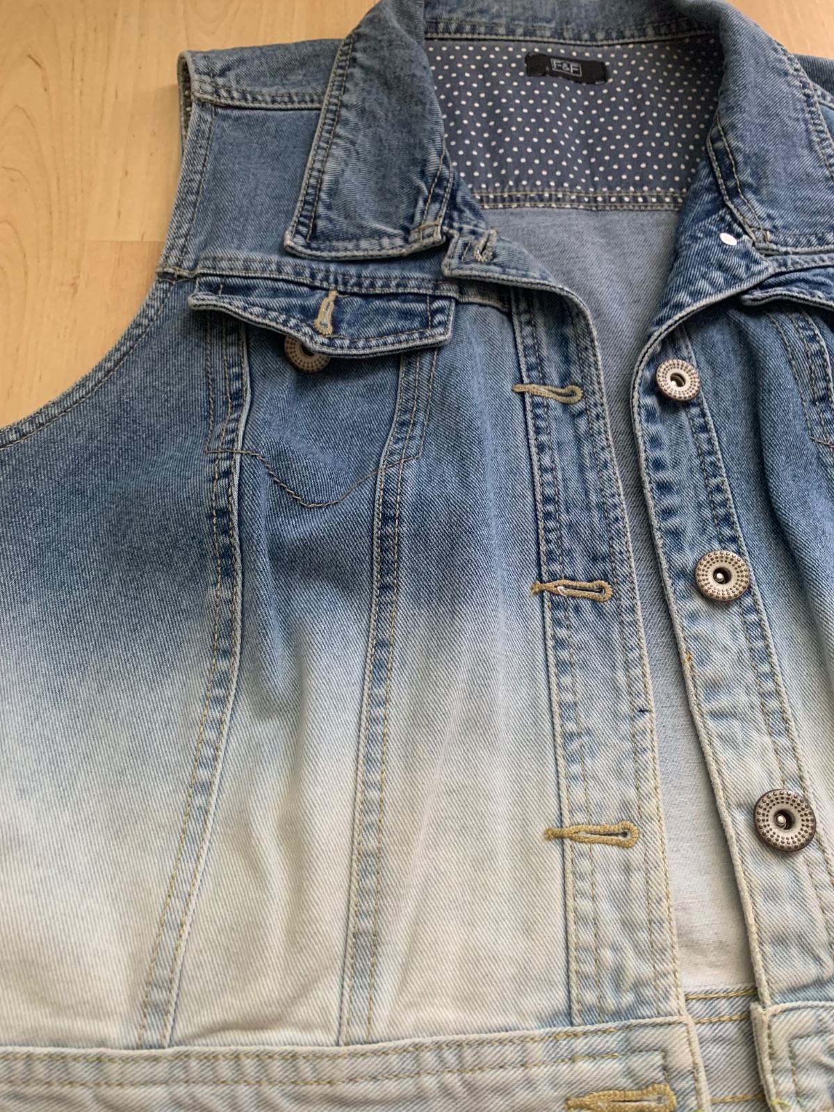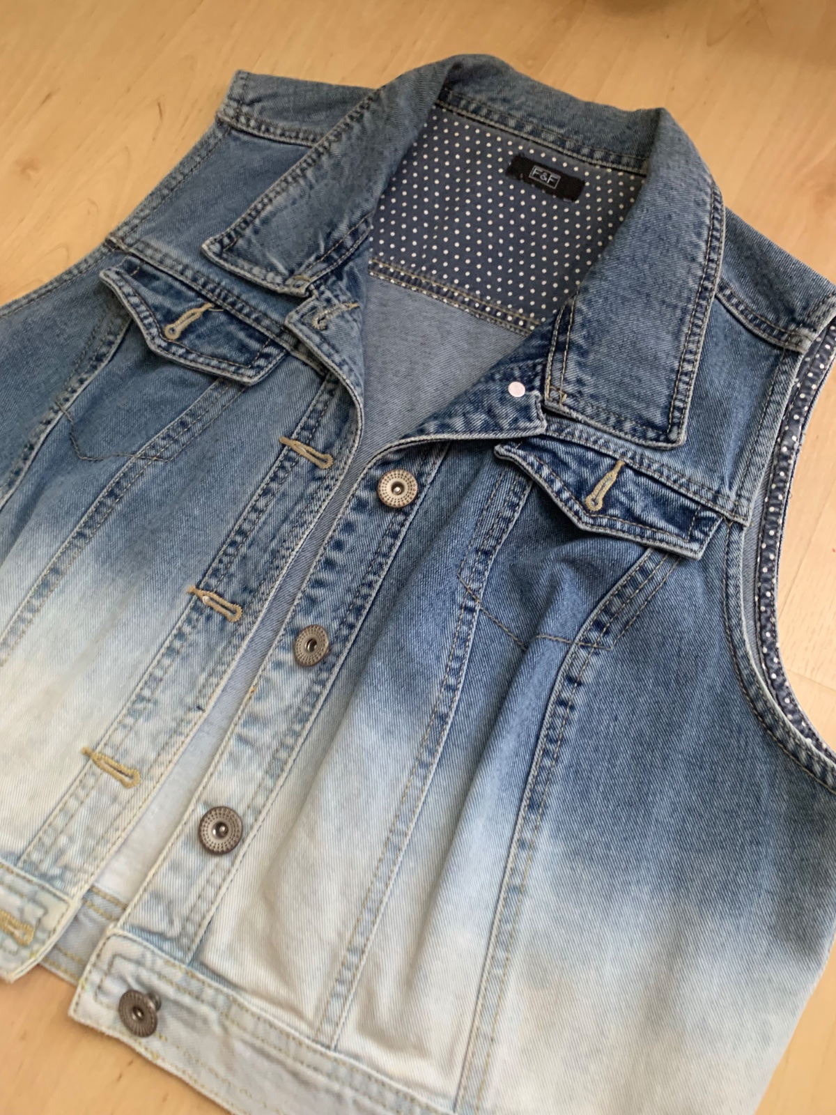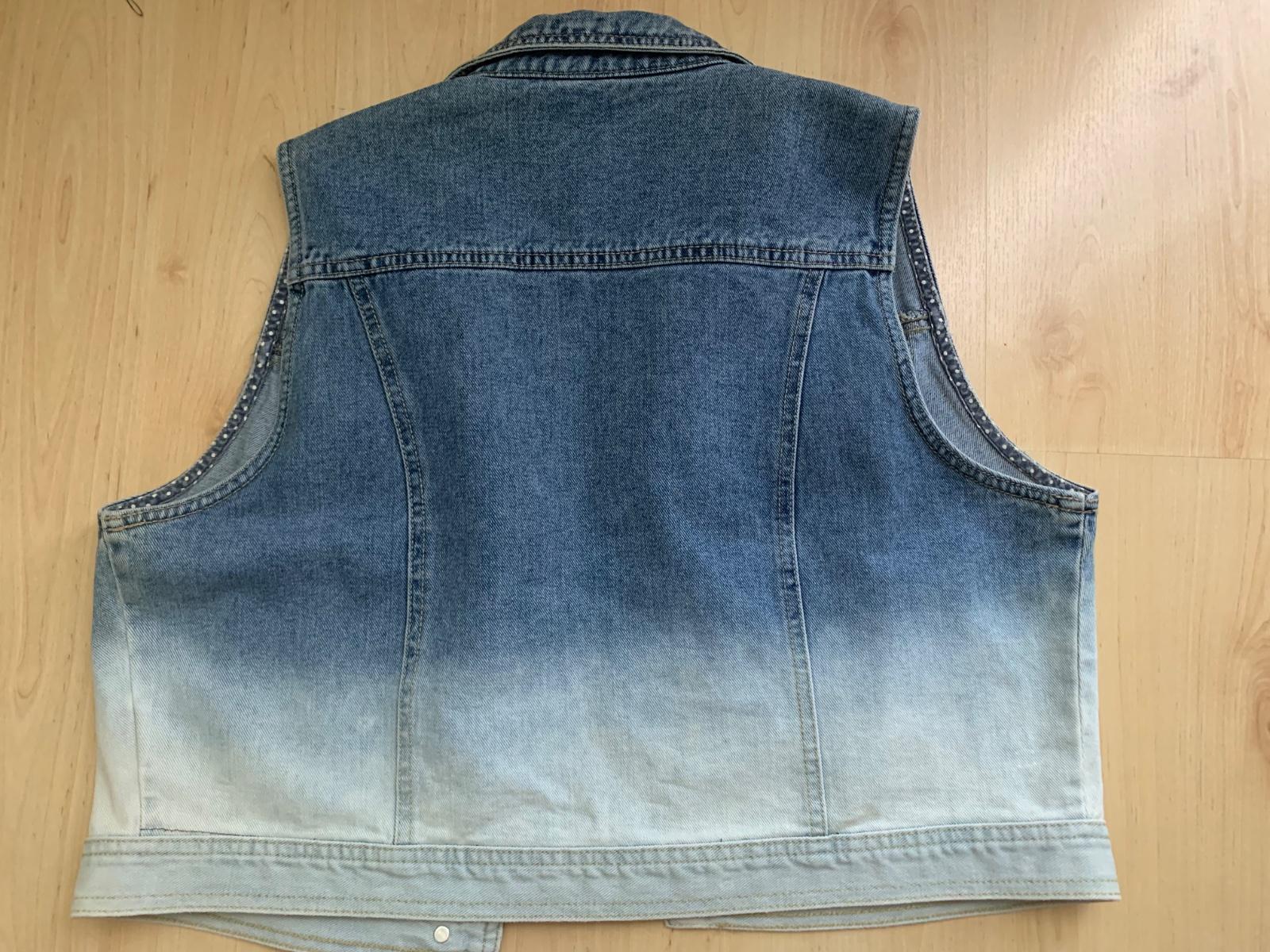 zaujimava vesta s bocnymi vystrihmi so zdobenymi kvietkami. Dlžka 87 cm, širka 54x2 cm. Kupovane v Nemecku. Prijemny padavy material.