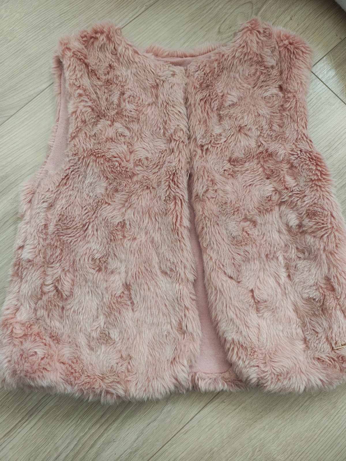 Veľmi milá huňatá vestička Lindex vo veľkosti 110/116 bledoružovej farby.