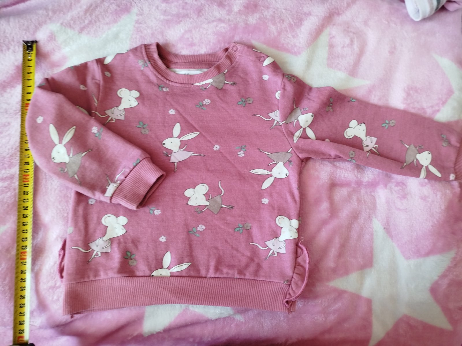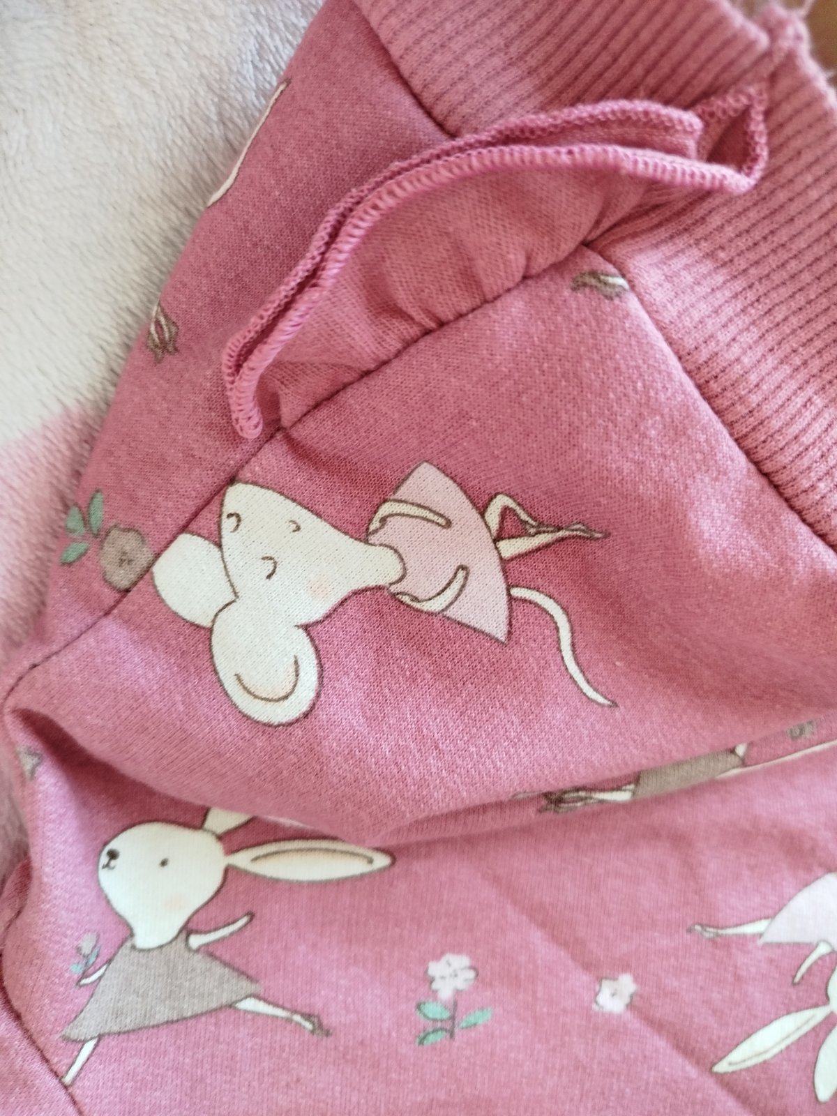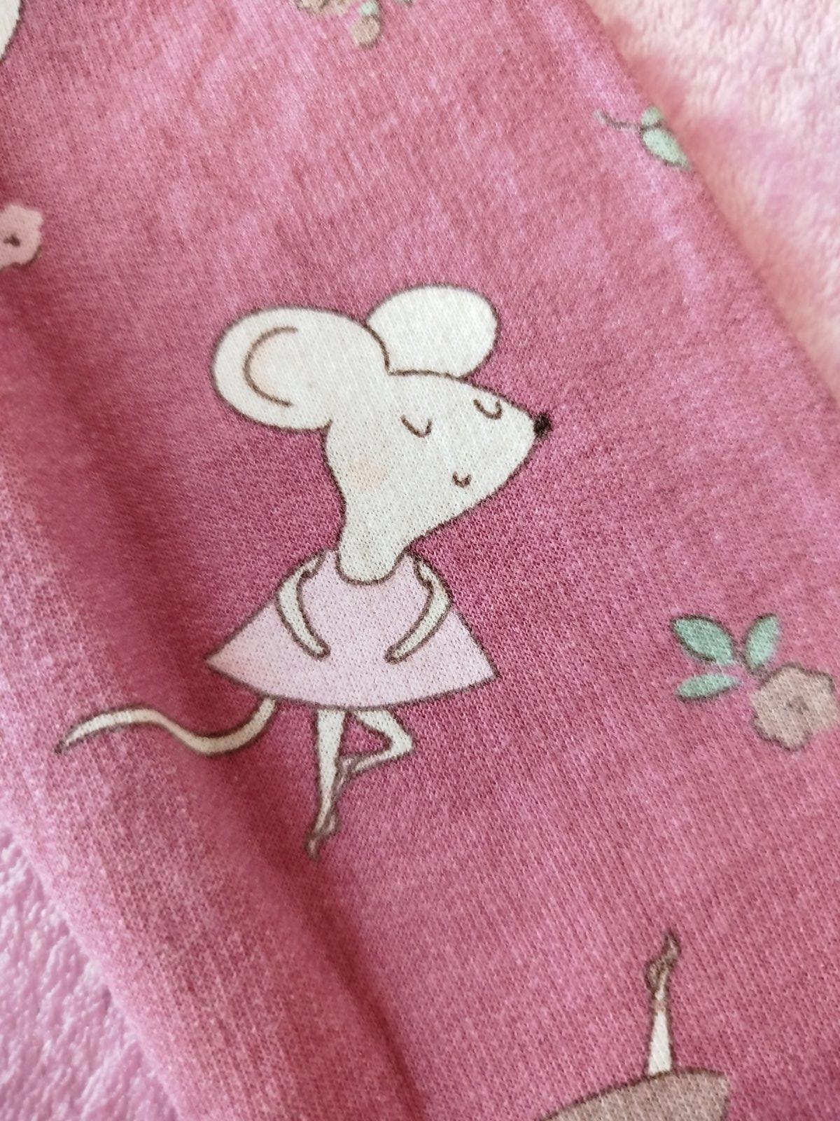 Je to skôr staroružová s nádychom bordovej ako sýto ružová. Nádherný motív s myškami, zvnútra jemne zateplená. TOP STAV ako nová.