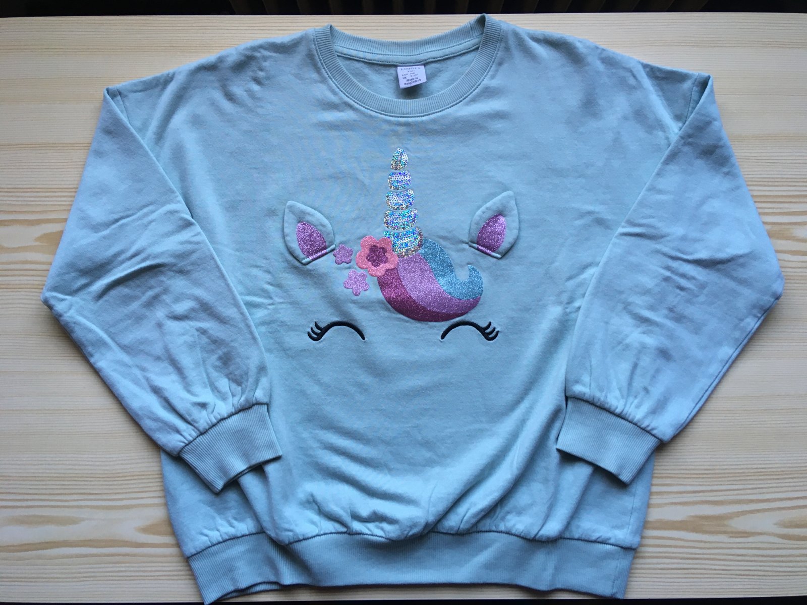 Zateplená mikina s motívom jednorožca vo výbornom nosenom stave značky Lindex vo veľkosti 140.
