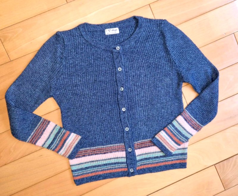 Svetrík na zapínanie, velkost 9 rôčkov, č. 134. Dlžka 44cm, šírka 36cm, dlžka rukávov od krku 54-55cm, merané v nenatiahnutom stave. Bez poškodenia, oblečený 1-2 krát.