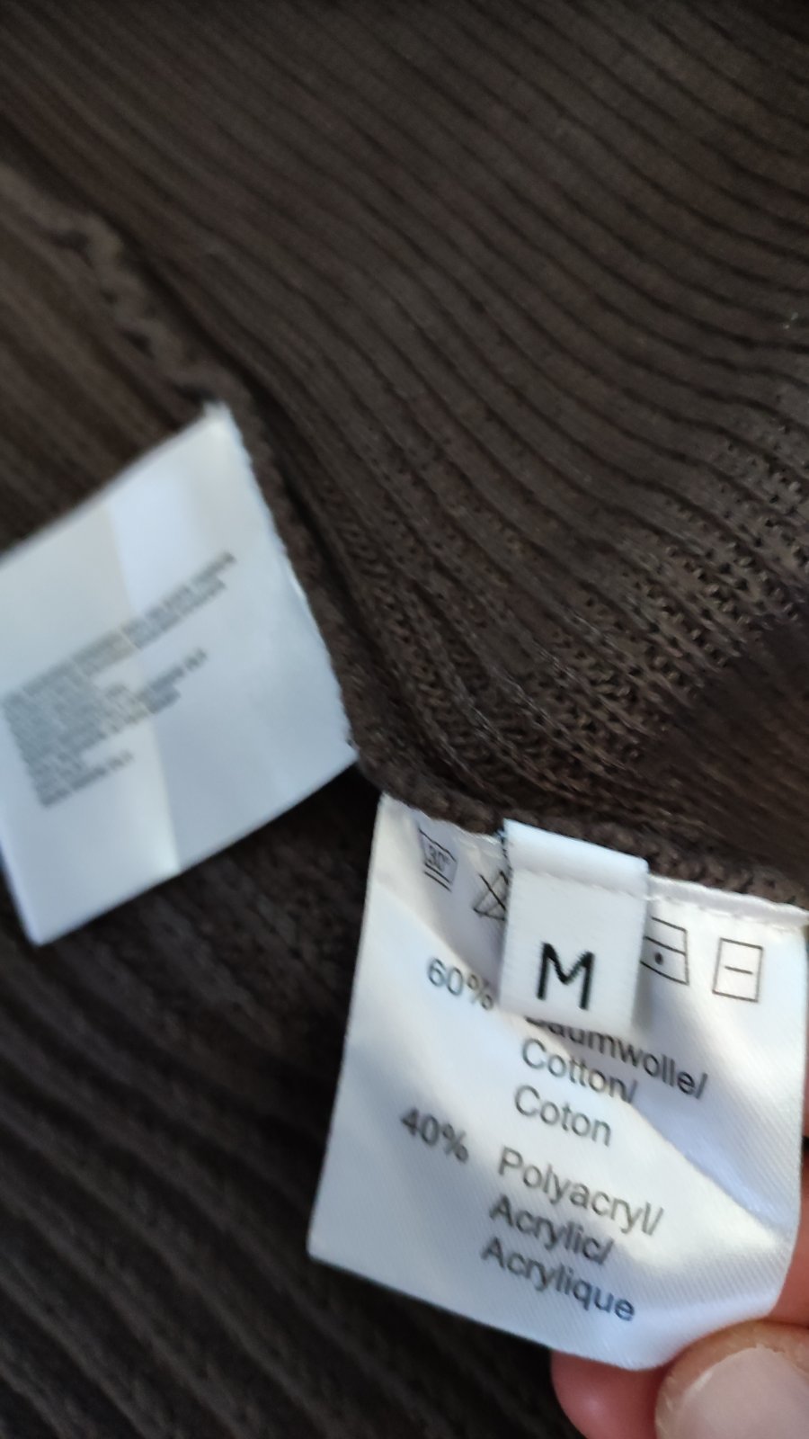 Predám hnedý svetrík s gombíkmi. Veľkosť nie je udaná, no vyzerá na M/L. Dĺžka 62 cm, šírka 37 cm. Zloženie: 70 % akryl, 30 % ľan.V prípade záujmu ešte premeriam! Budem rada, keď niekomu poslúži:...