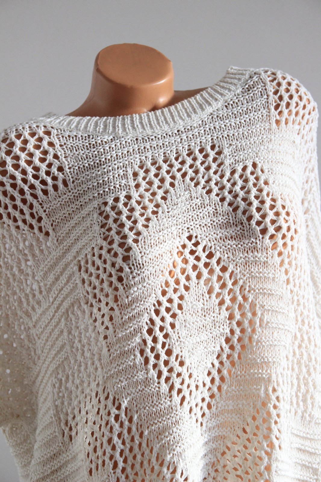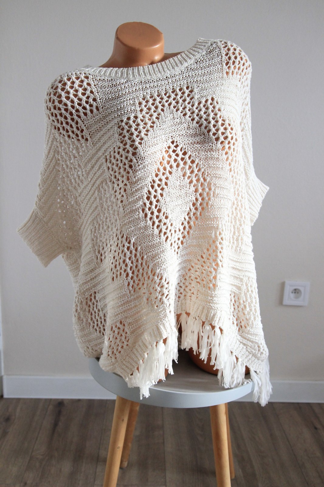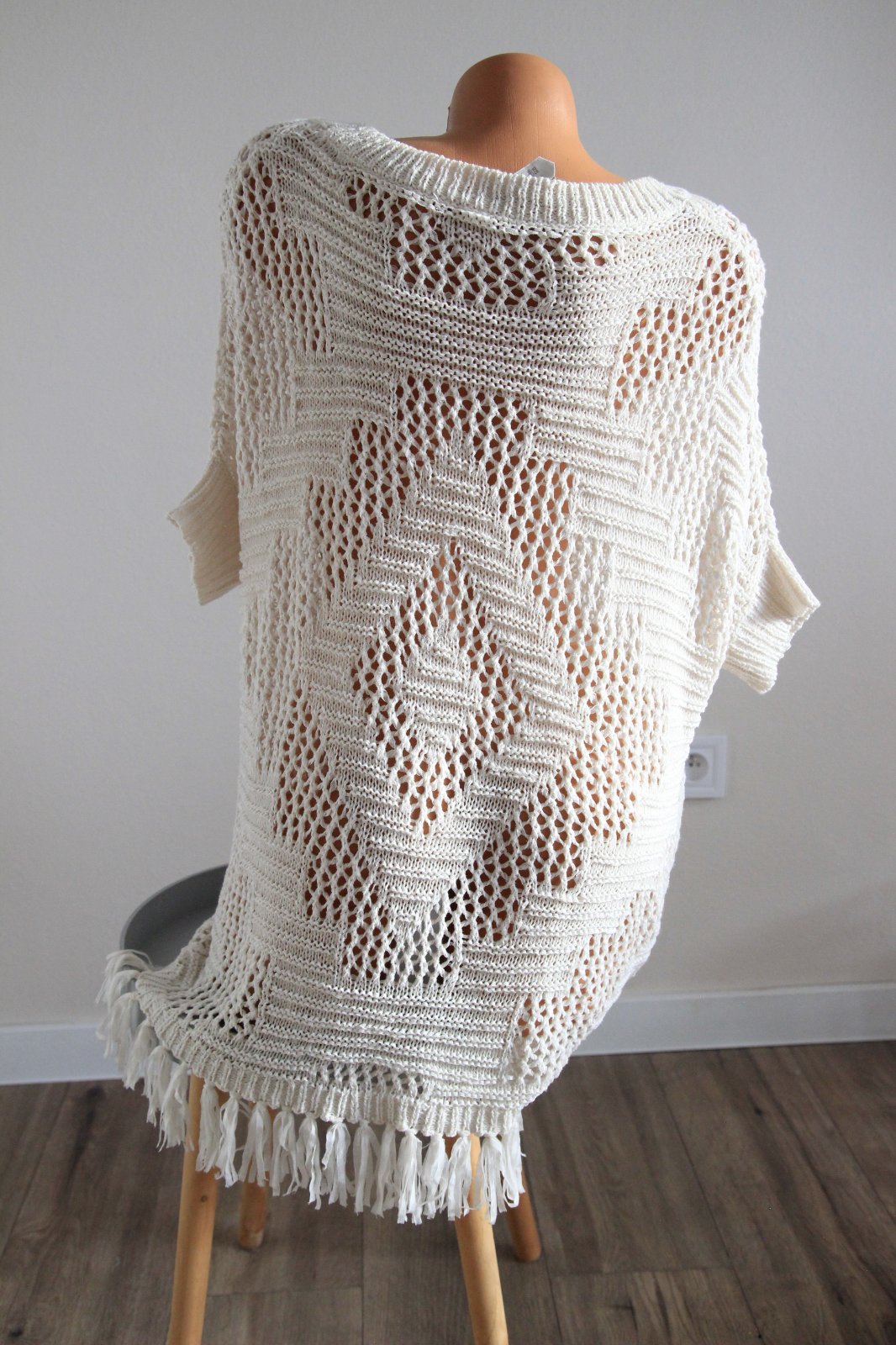 Krémový pletený top so strapcami od Pull&Bear - top stav. Veľkosť M. Oversize strih.