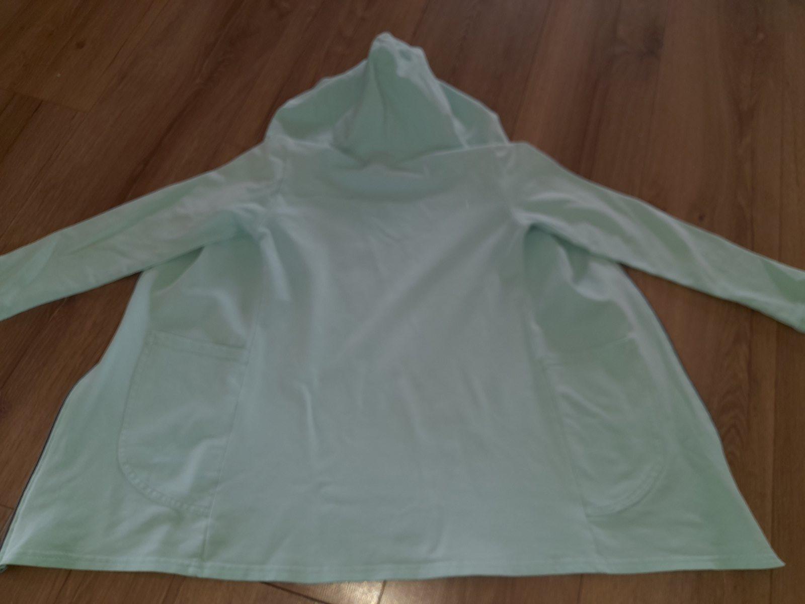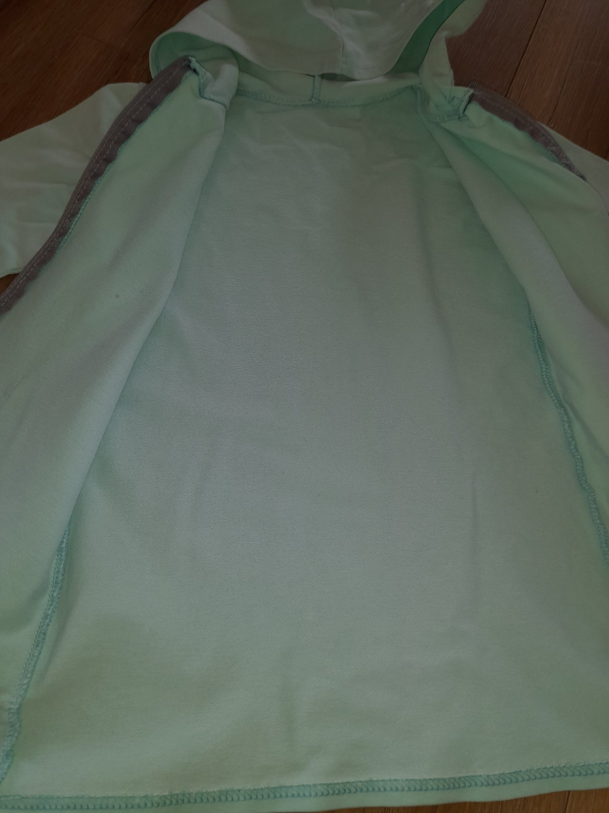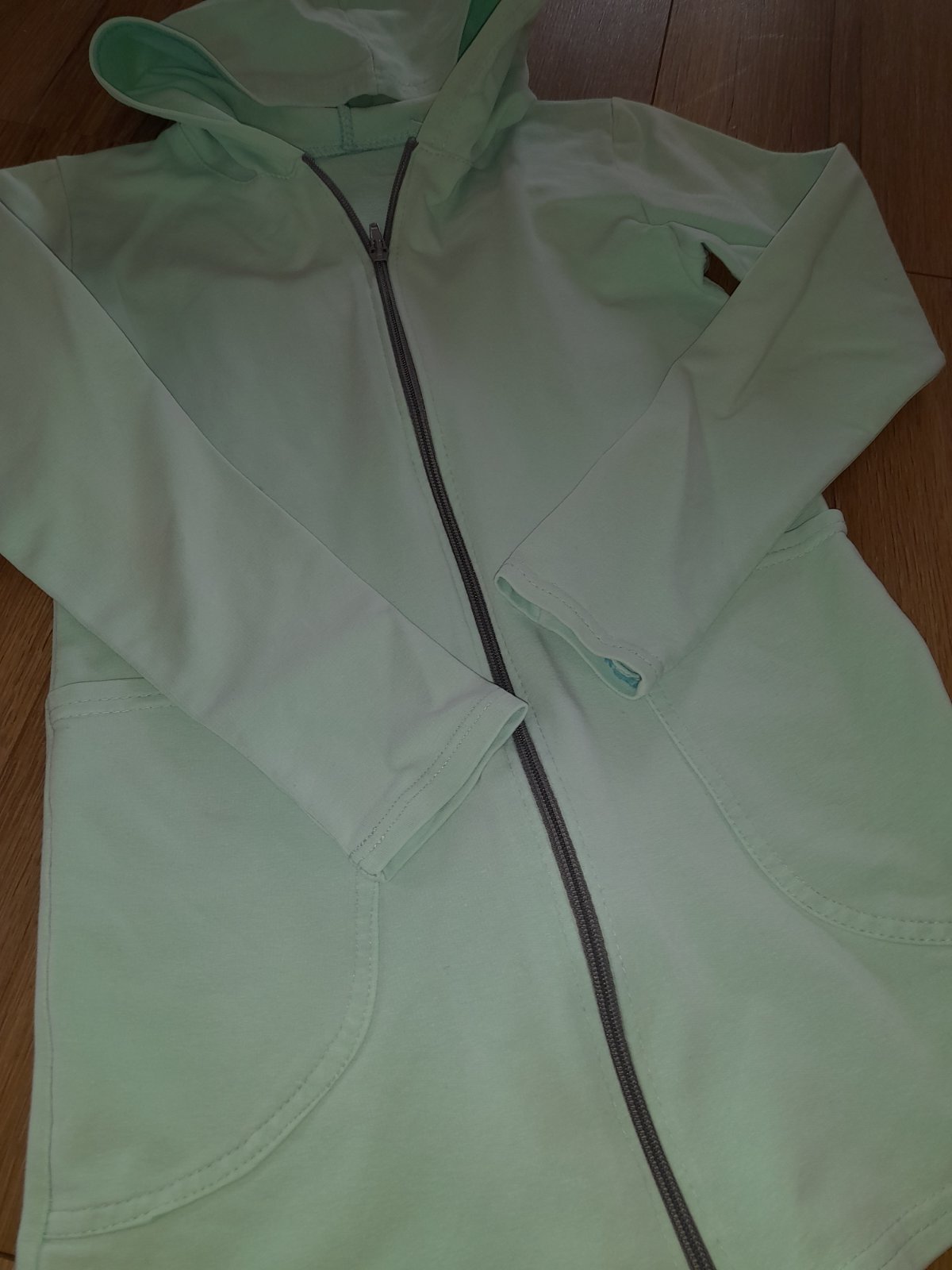 Ponukam na predaj kvalitnu bavlnenu mikinku. Je skor tensia, nie je podsita. Je to 100% bavlna. Farba svetla mätovo zelena. Strih trosku dlhsi. Velmi oblubena, prakticka, vynikajuco sa nosila, perfektne sedela. Idealna k leginkam. Zips funkcny, dve vrecka, kapucna napevno. Ma ale malinky fliacik.