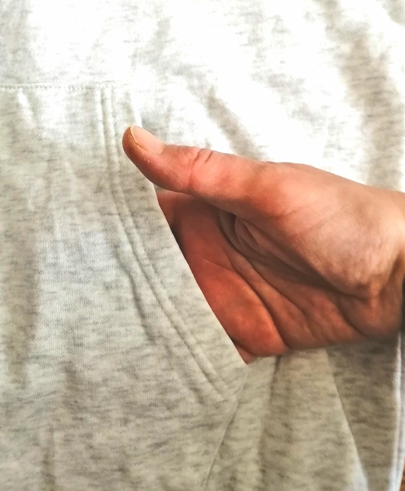 Po 1 dieťati, ľavé vrecko sa podarilo synovi trošku natrhnúť, zašila som ho a miesto prekryla malou nášivkou.