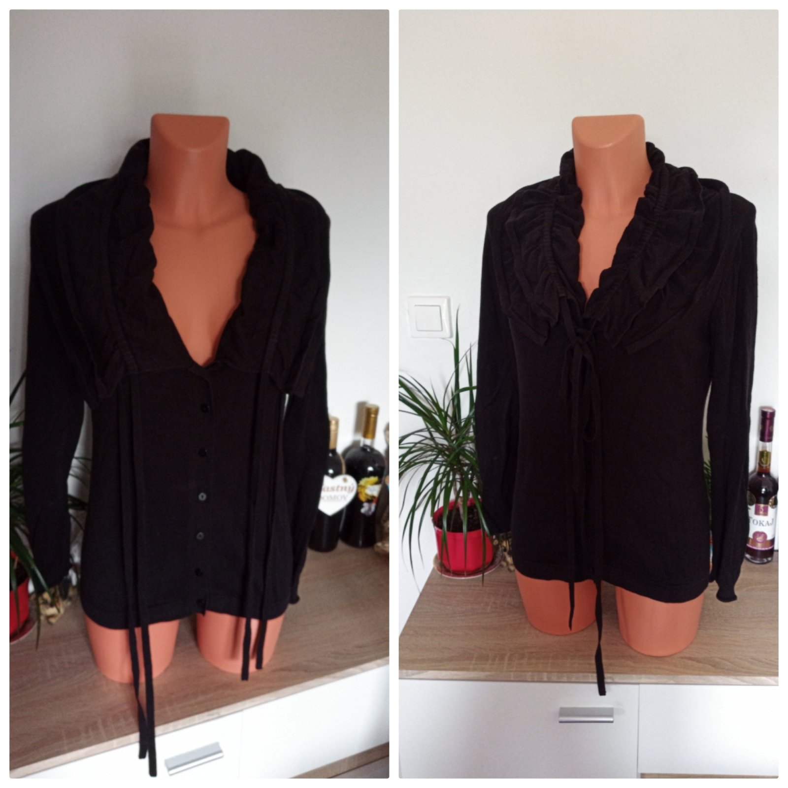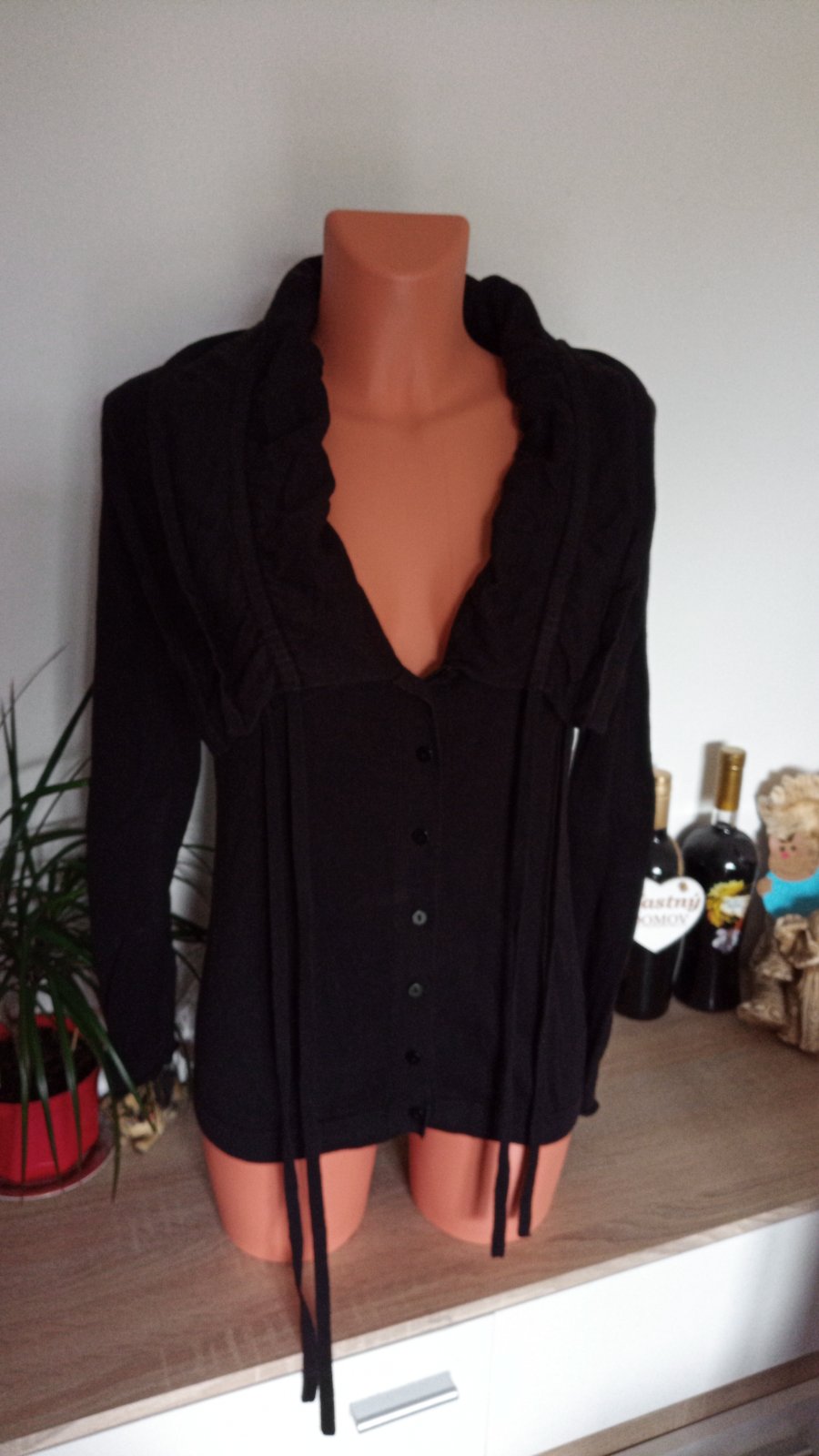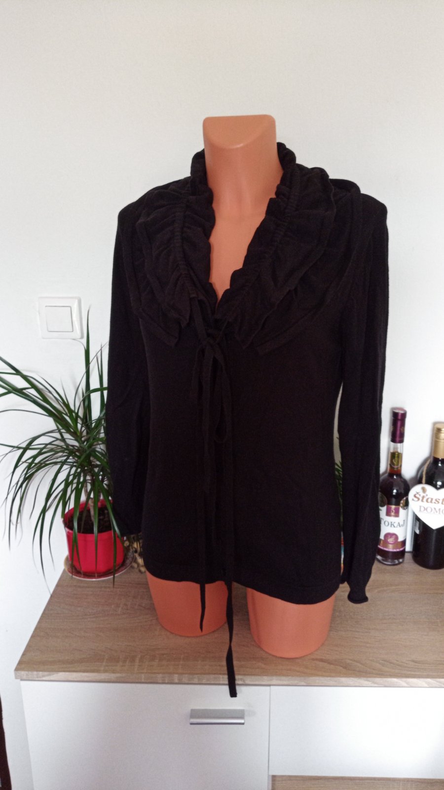 Výborný nosený stav. Zaujímavy, trochu extravagantný,s volánmi, ktoré sa dajú upraviť šnúrkami .Pleteninový.