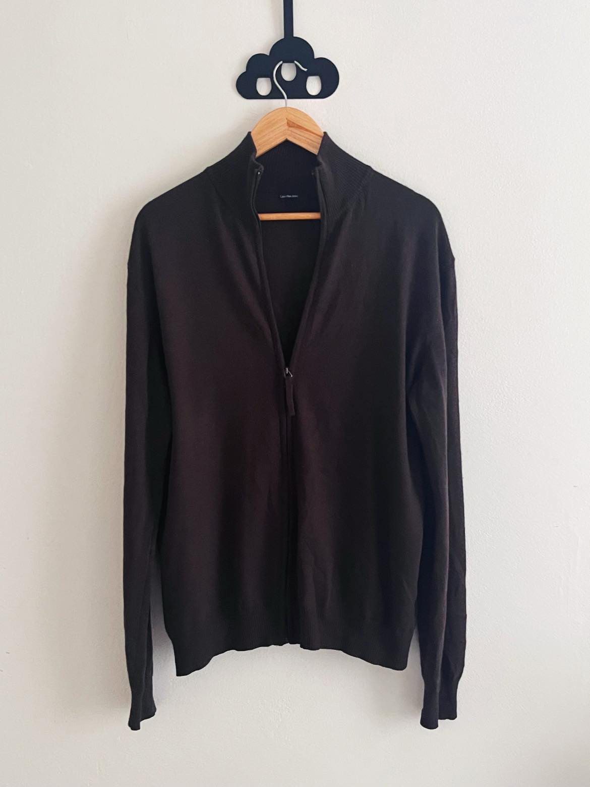 Párkrát oblečený pánsky sveter značky Calvin Klein v tmavo-hnedej farbe. Bohužiaľ štítok so zložením a veľkosťou odstrihnutý, ponechaný iba štítok na krku s označením značky. Veľkosť L. Vyšité logo značky viď foto. Pôvodná cena okolo 120eur.