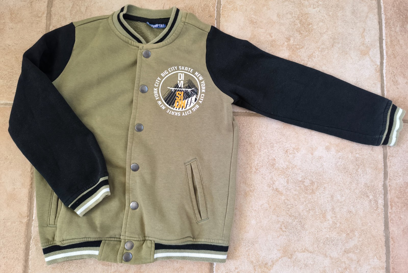Nosená ale nepoškodená mikina,fajná hrubá, píše sa že na 6-8 rokov ale bude menšia, tak mozno na 5,aspoň mojmu tak sedela a to je chuducky.dlzka rukavu od ramena je cca 52cm