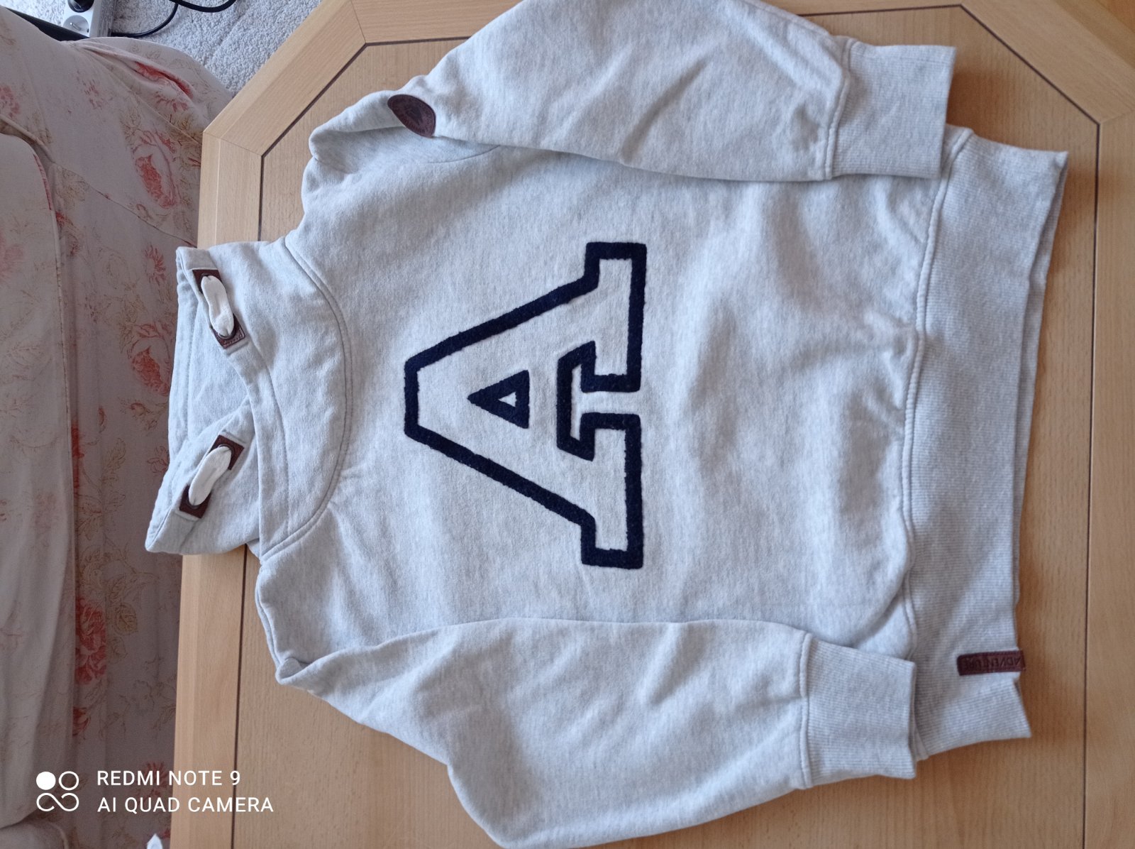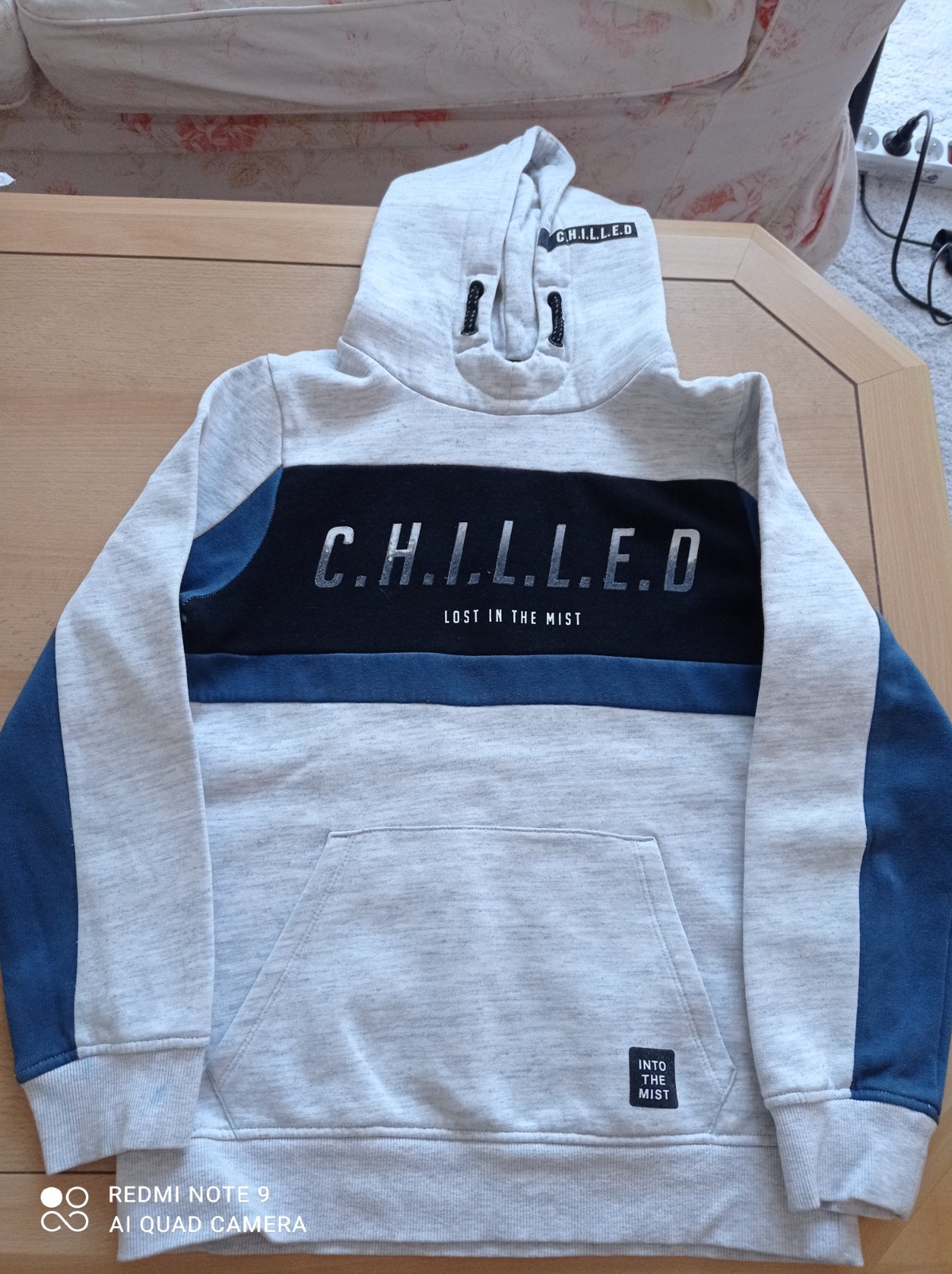 Teplá mikina s kapucňou, bledšia farba ako na fotke. Nosené ale bez poskodeni, stále pekná. Velkost 146/152 sedí.