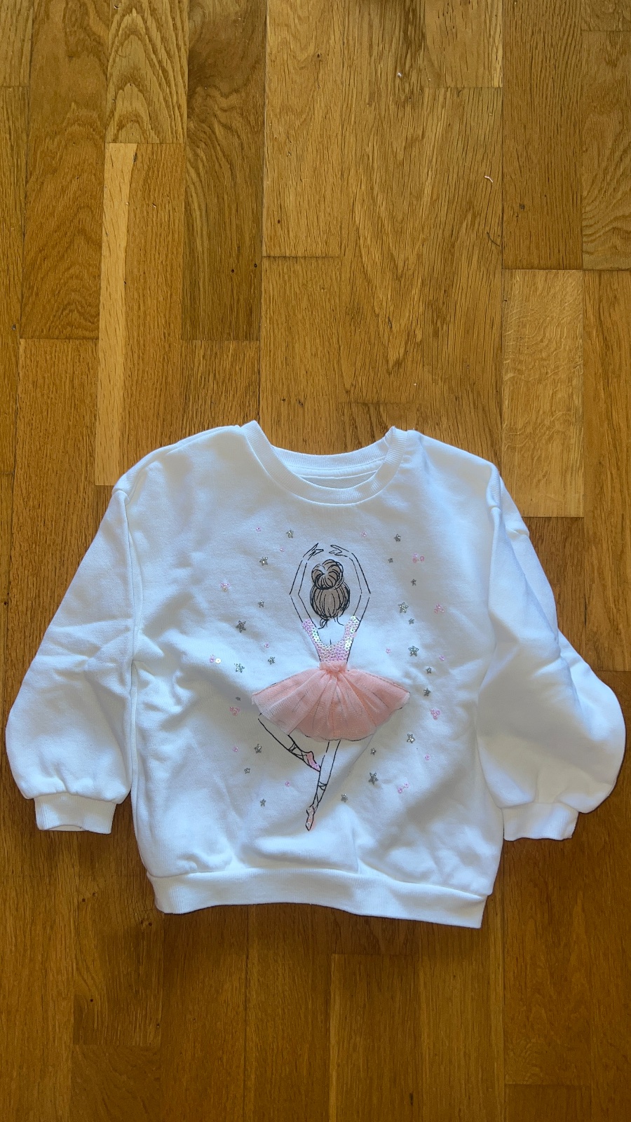 Krásna mikina s nápisom a motýlikmi, sem tam minižmolky iba na patentoch a zvnútra na gumičke. Veľkosť 3-4roky.V