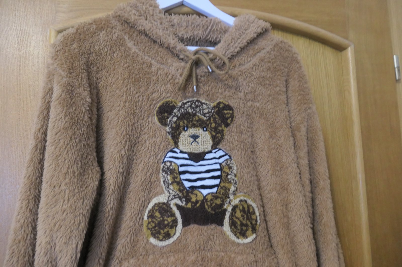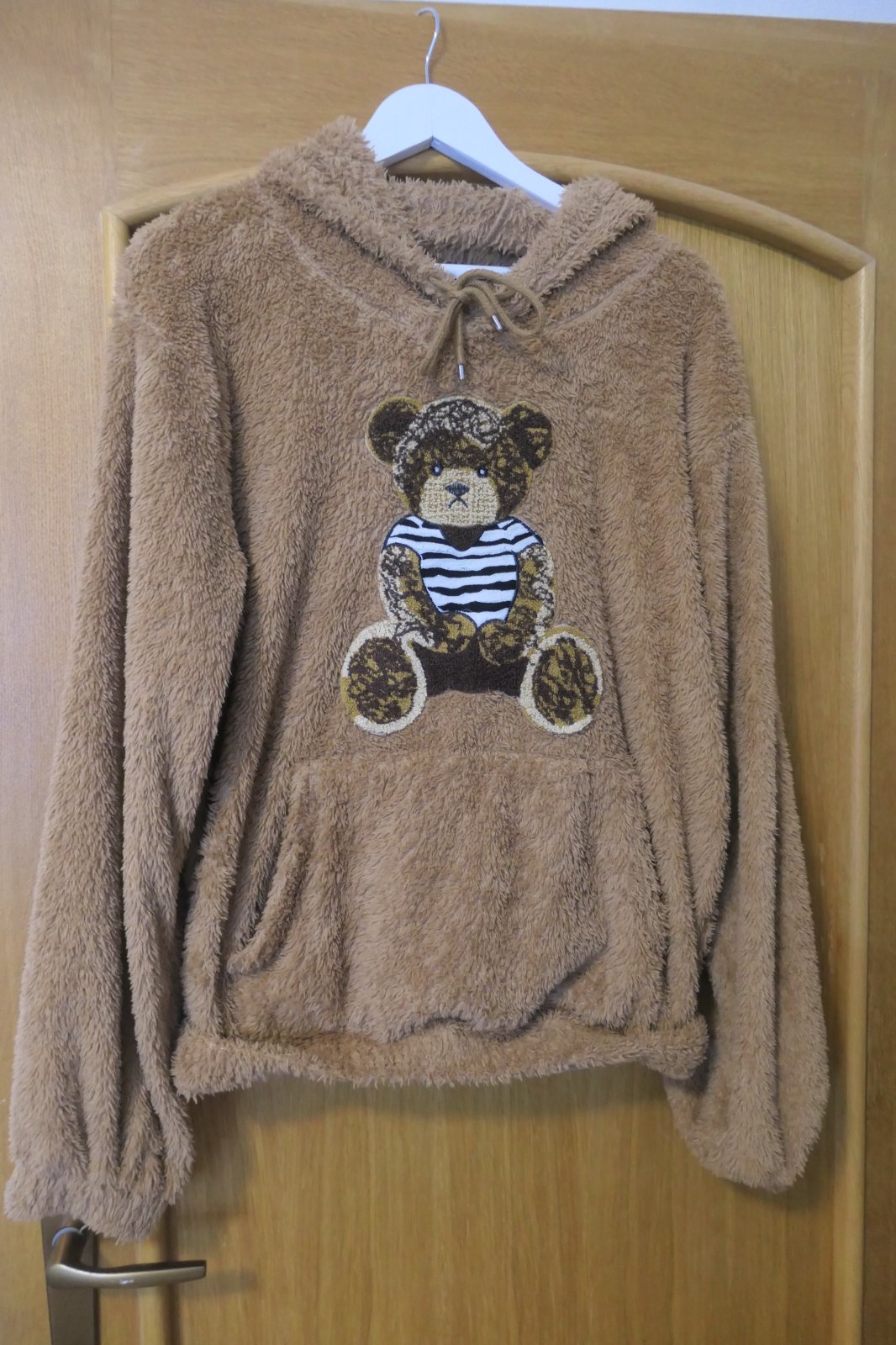 perfketna, kvalitna, lahucka, hunata, detailne vypracovana damska mikina, s krasnou kvalitnou aplikaciou medveda, top, bez chyby, sedi na M-XL, kupovana v zahranici, spodok do vsitej gumy, aj patenty na rukavoch ukancene v gume, klokanie vrecko, kapucka, aplikacia medveda nie je nazehlovacka