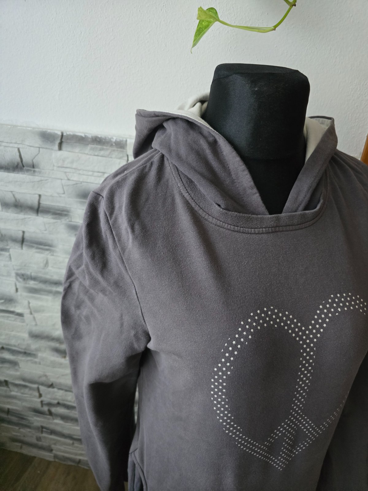 Kvalitná tenšie mikina, top stav, raz oblečená. Dĺžka 62 cm, šírka cez pás v kľude 60x2cm