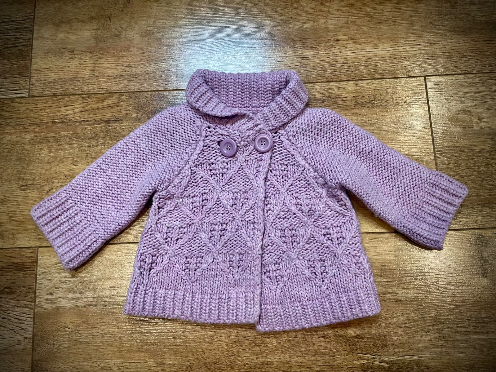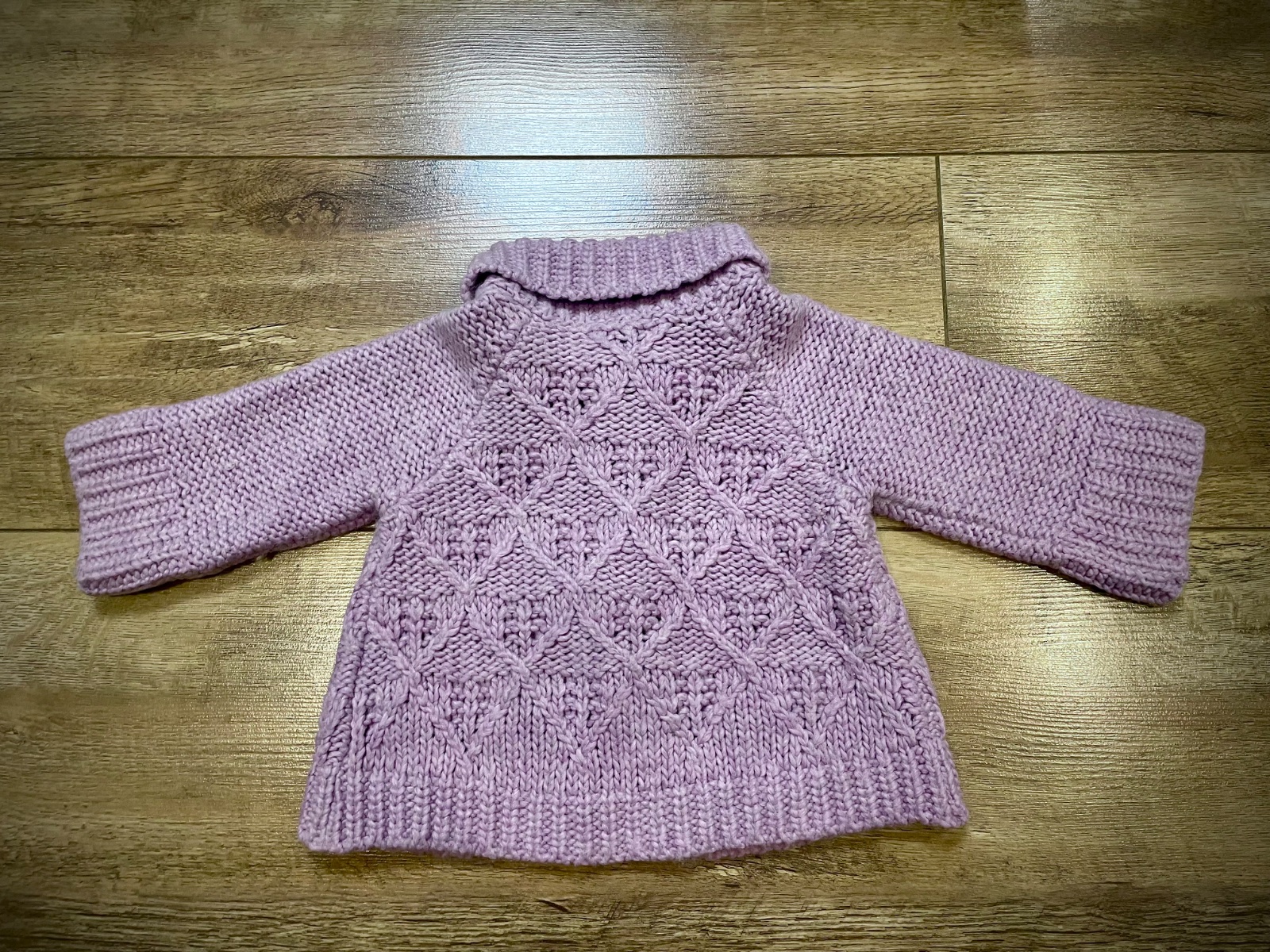 Štýlový bledofialkový svetrík pre dievčatko od 12-18 mesiacov. Je vo veľmi peknom stave, nosený len na príležitosť.
