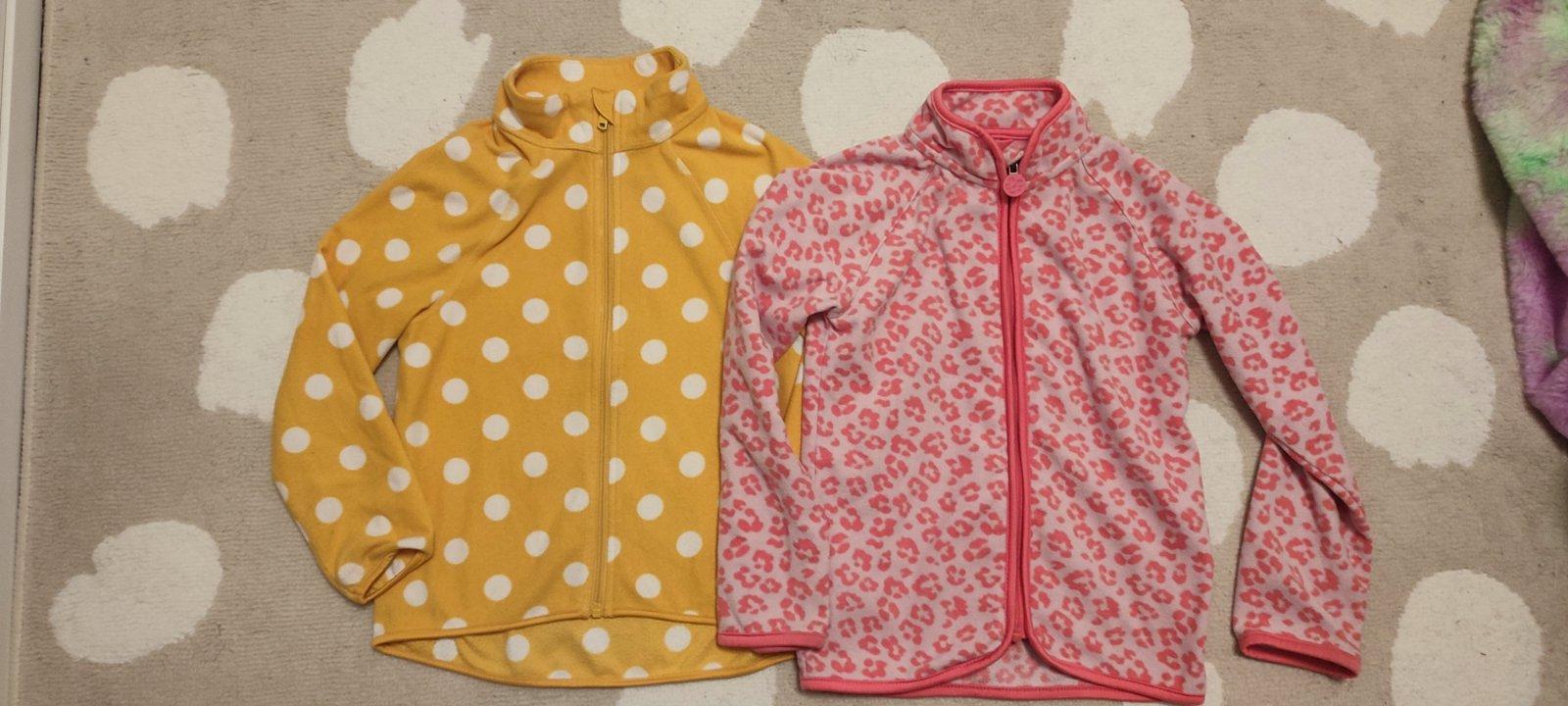 Nosené flísová mikiny. Ružová je Tchibo. Žltá HM. Nosené bez poškodení. Nosenie už vidno. Zipsy fungujú. 3Eur/kus