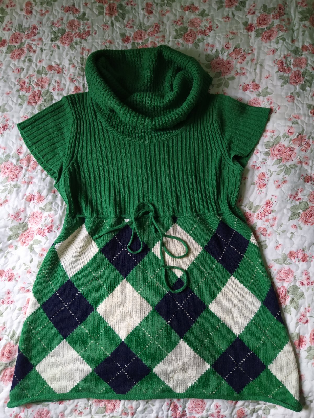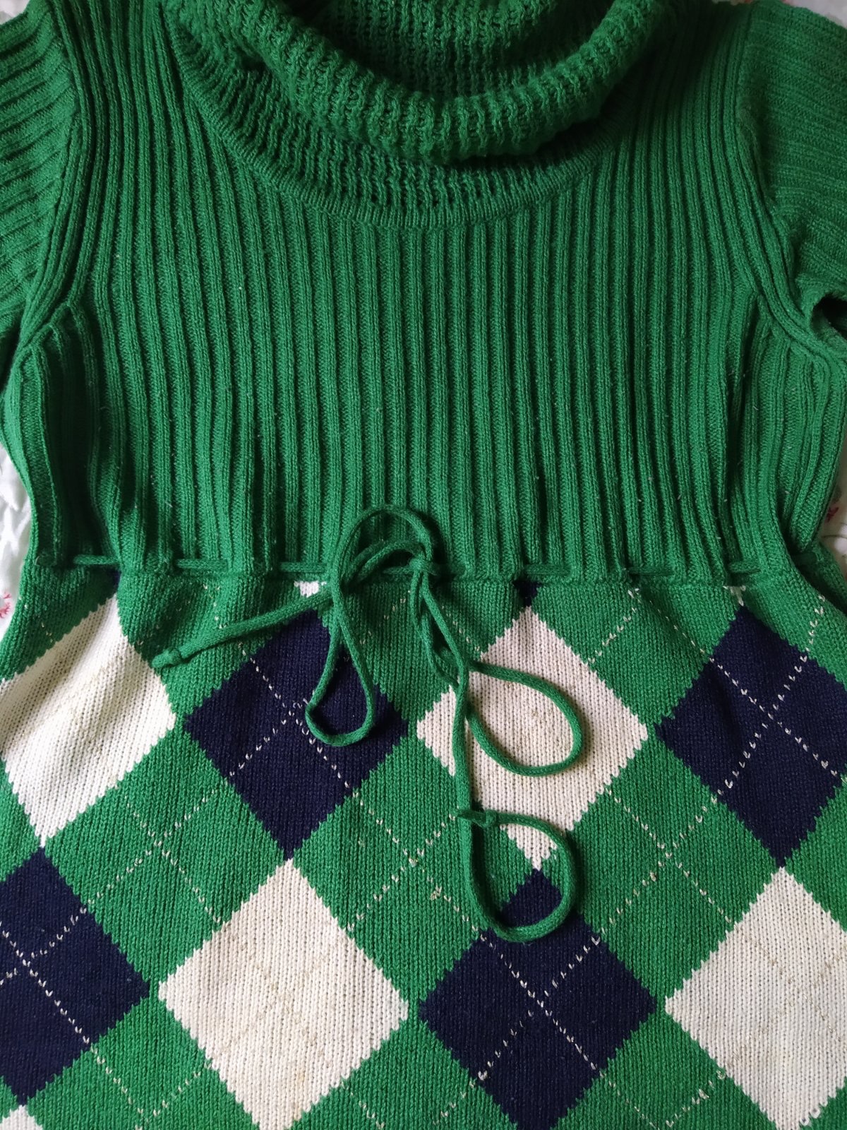 Hrubý sveter na gombíky s opaskom. Super do roboty kde je zima. Noseny. Farba je pekná mavo zelená. Na foto dobre nevidno